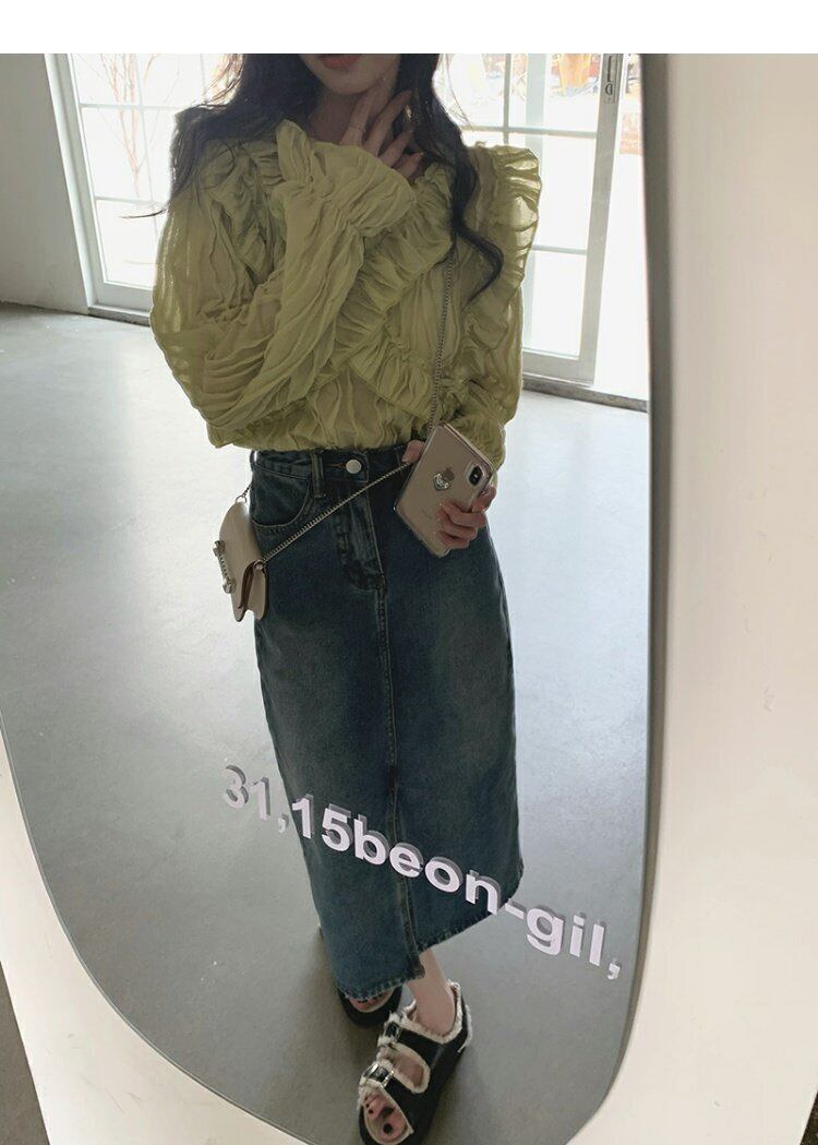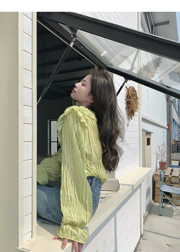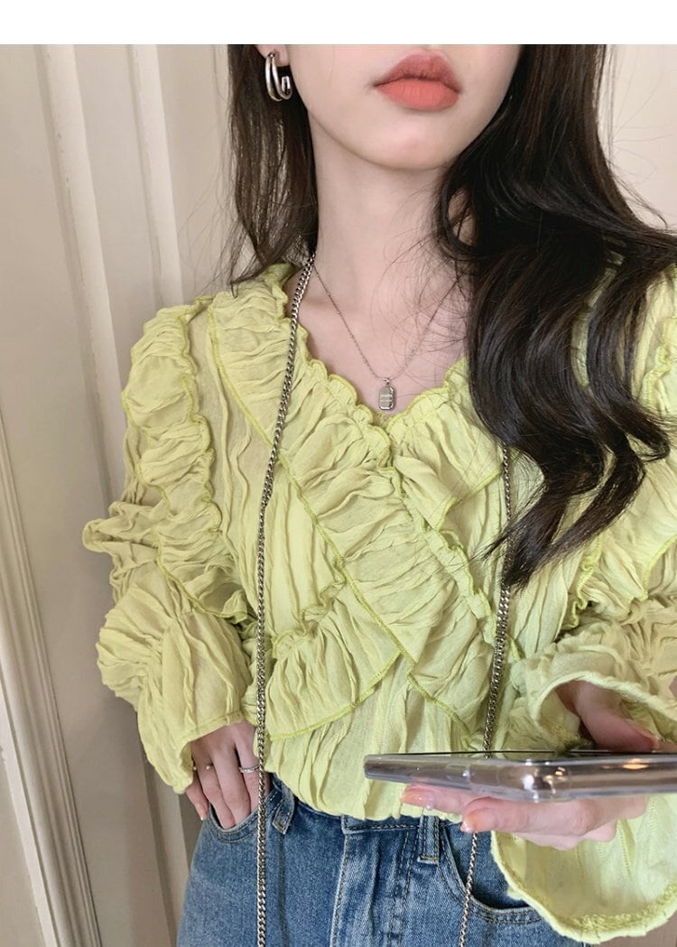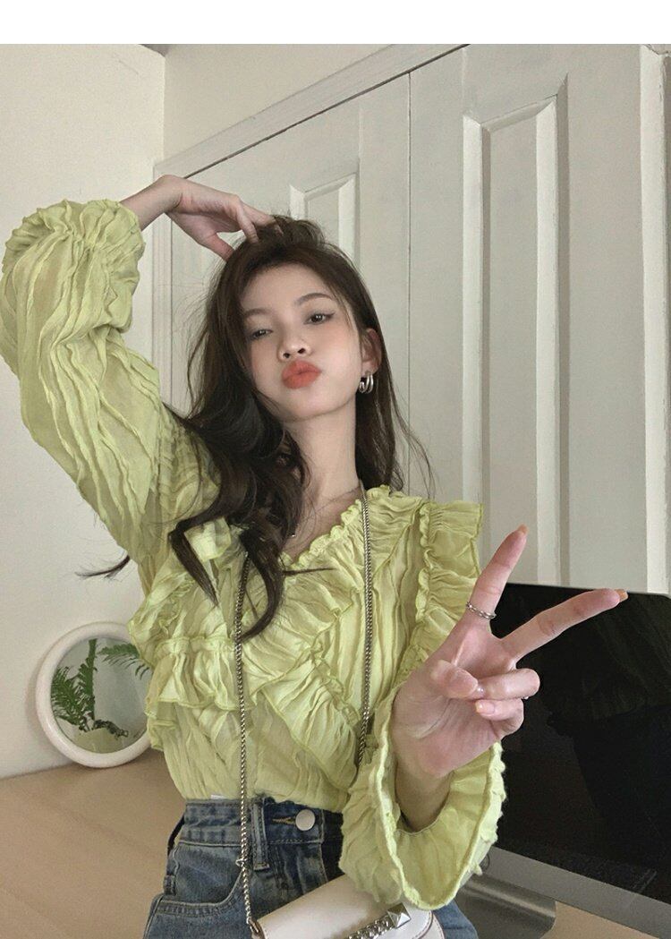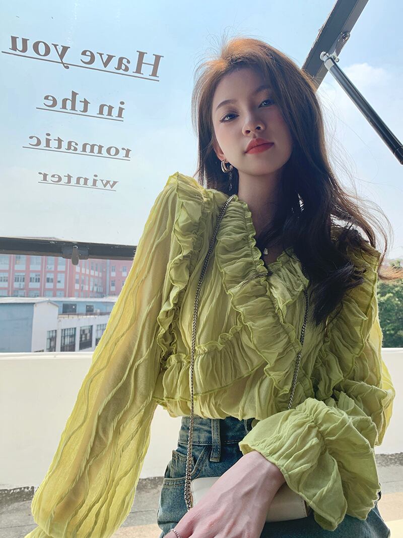 Vネックシャツ 夏服グリーンシフォントップス 夏物 MONROE56136662634