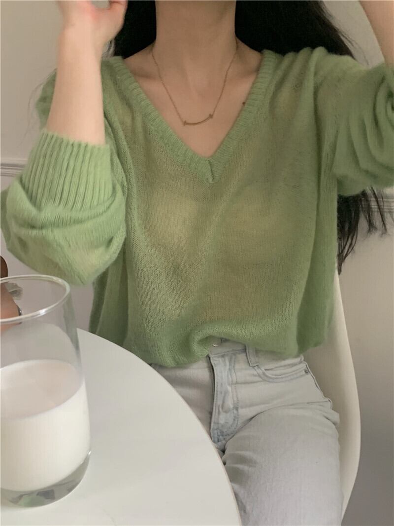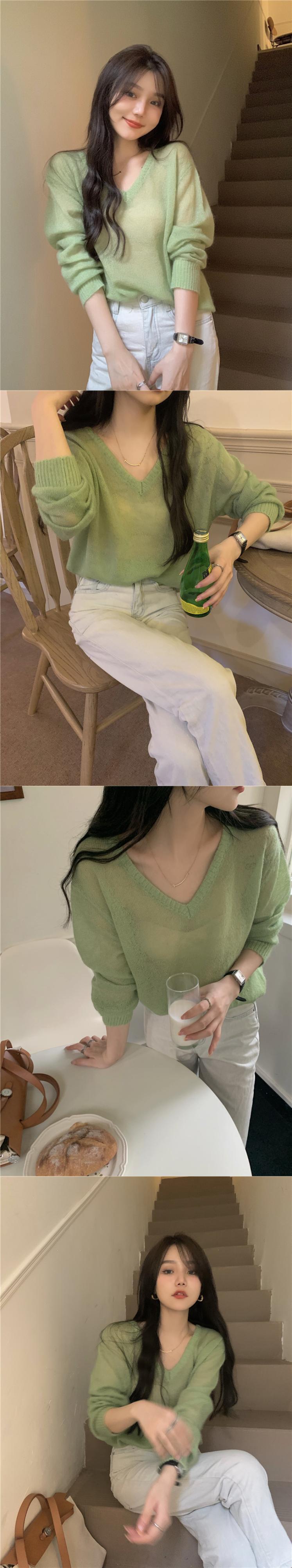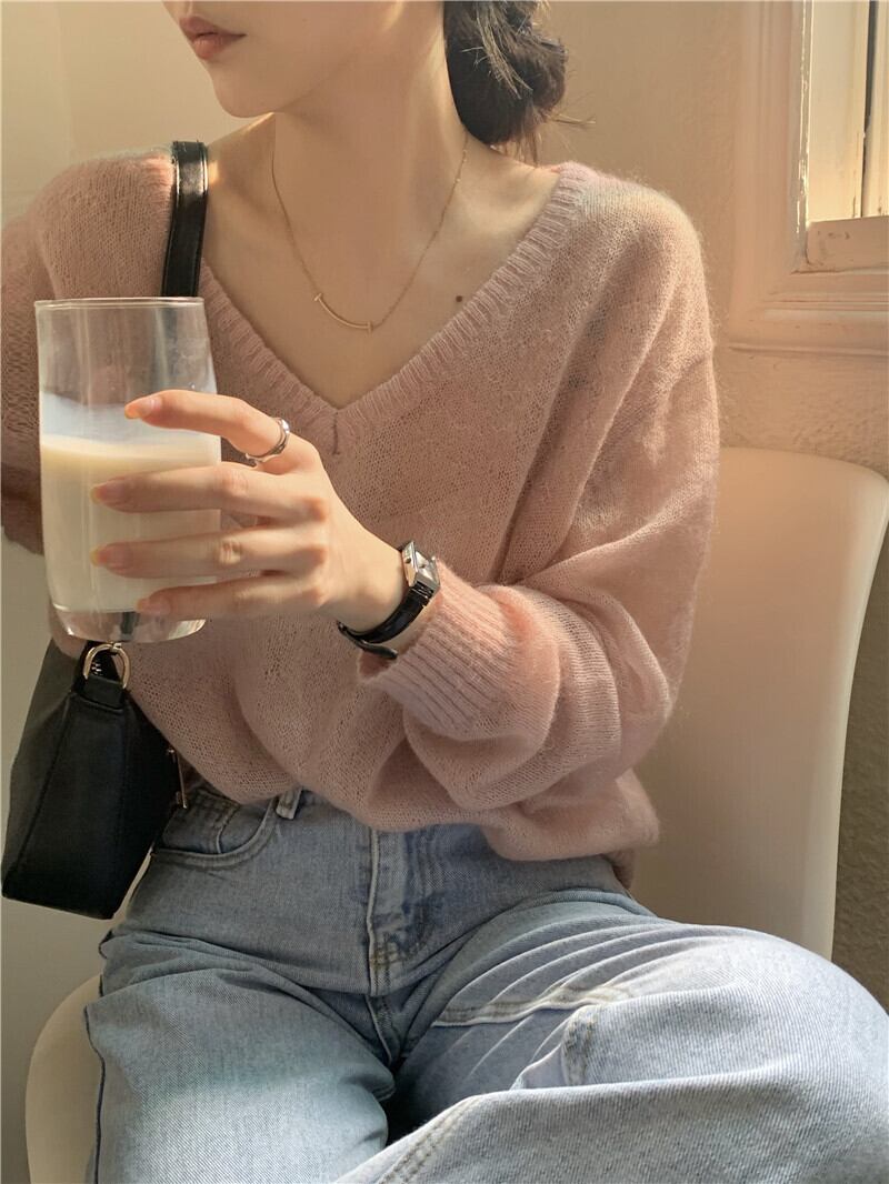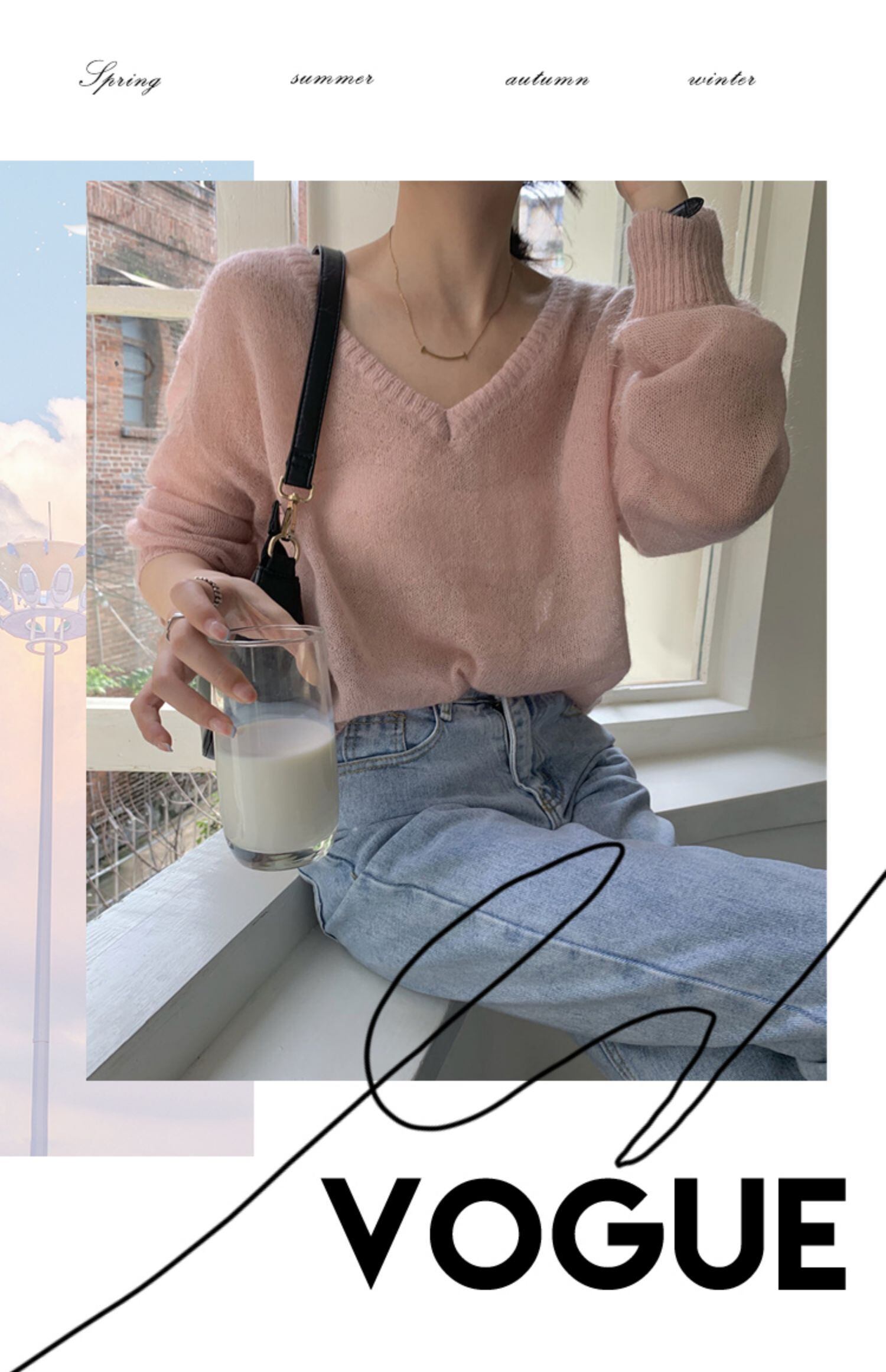 Vネックスタイルセーター 秋物薄手コート トップス ロング ピンク オータム 長袖 MONROE68379291952