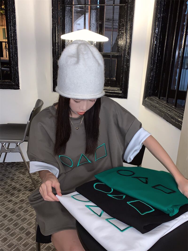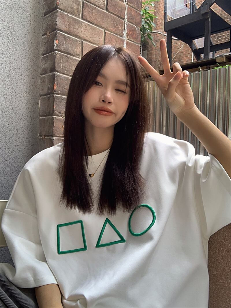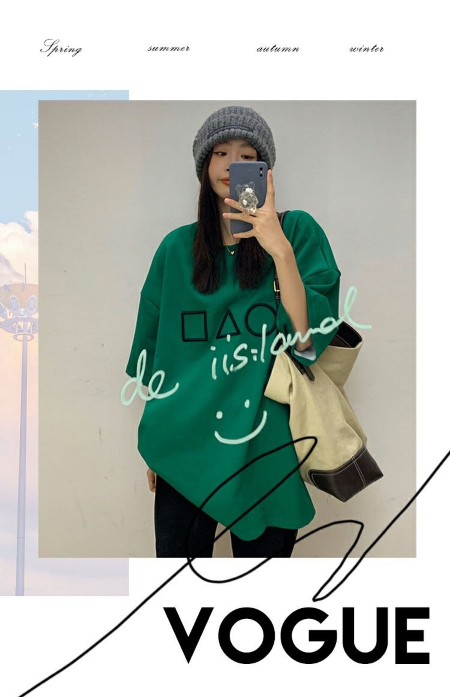 NEWパターンプリントTシャツスプリング秋物ルーズ薄手トップス 春物 オータム ミドル丈 MONROE72327292923