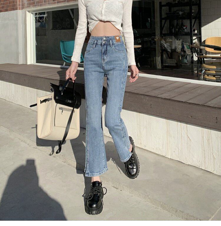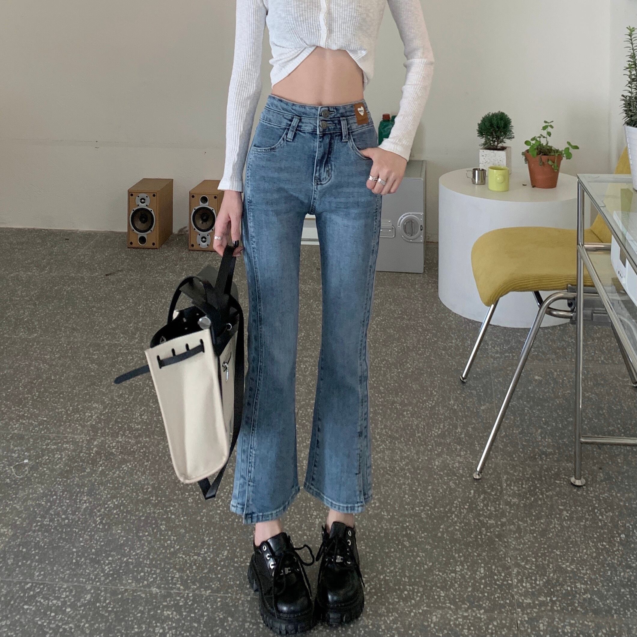 韓国ファッションスリムハイウェストウェストジーンズ スプリングスタイルスリットパンツ 春物 ウエスト MONROE31236418565