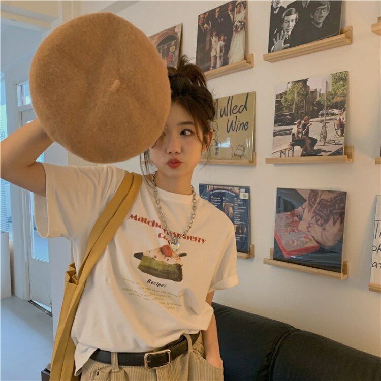 ホワイトTシャツ夏服スタンダード レッド レトロ 夏物 MONROE31240383428