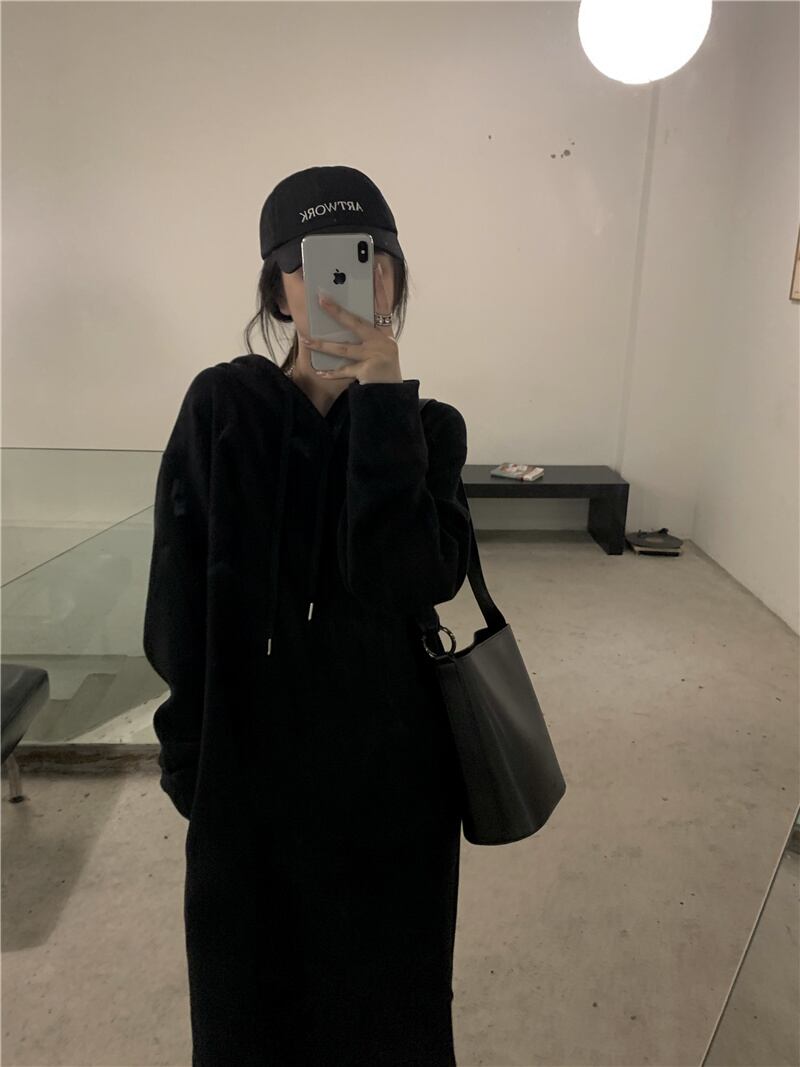 フードセーター ワンピーススプリング韓国ファッションルーズロングスカート 春物 スタイル ミドル丈 MONROE69196526481