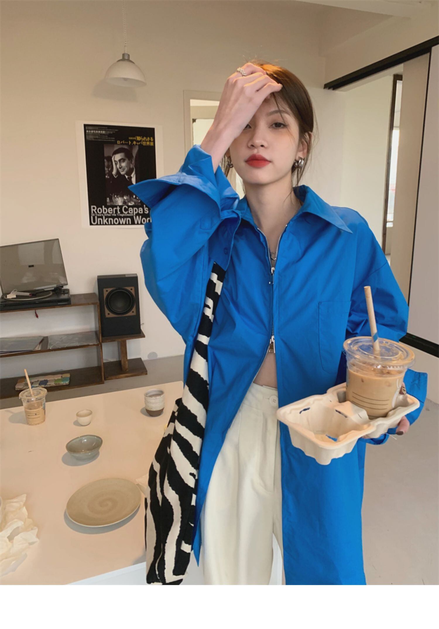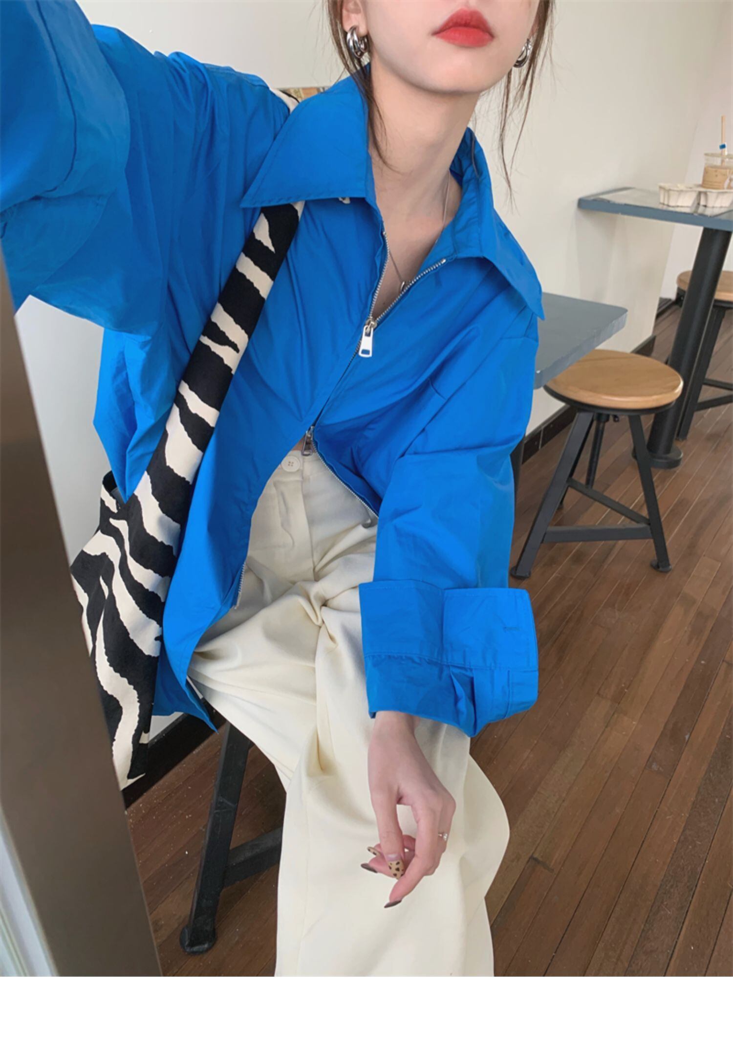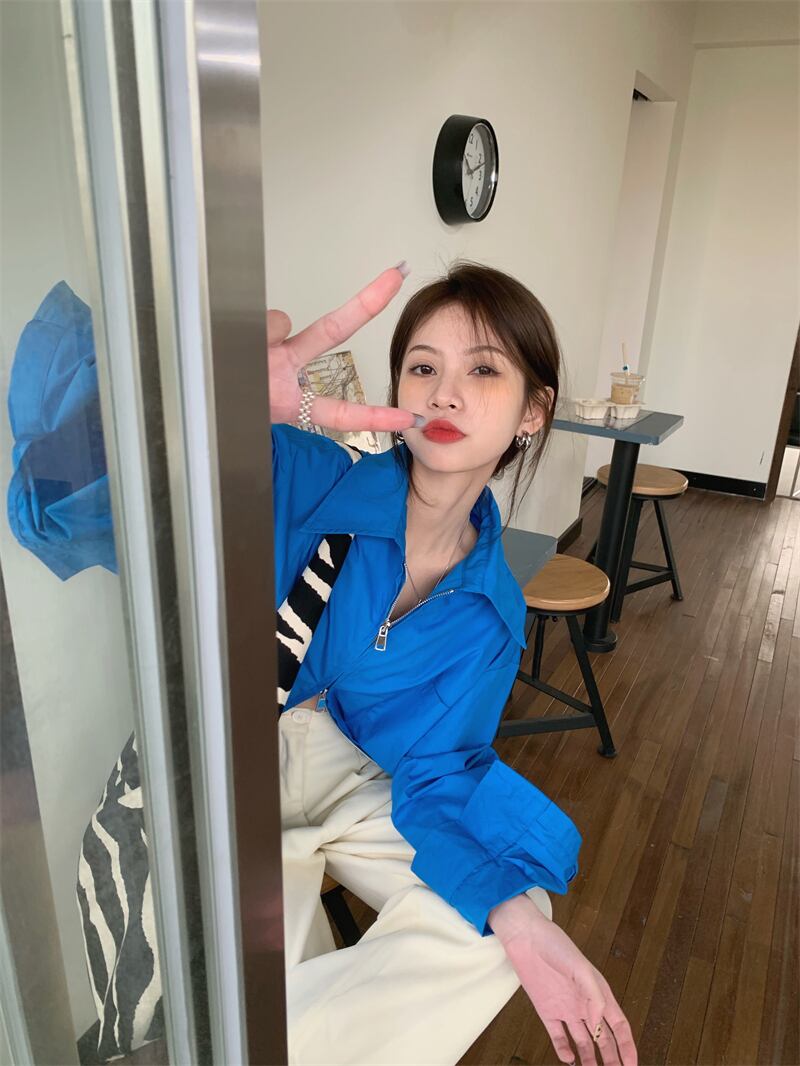 韓国ファッションブルールーズシャツ ジャケット スプリング秋物トップス 春物 オータム スタイル ミドル丈 MONROE32621534814