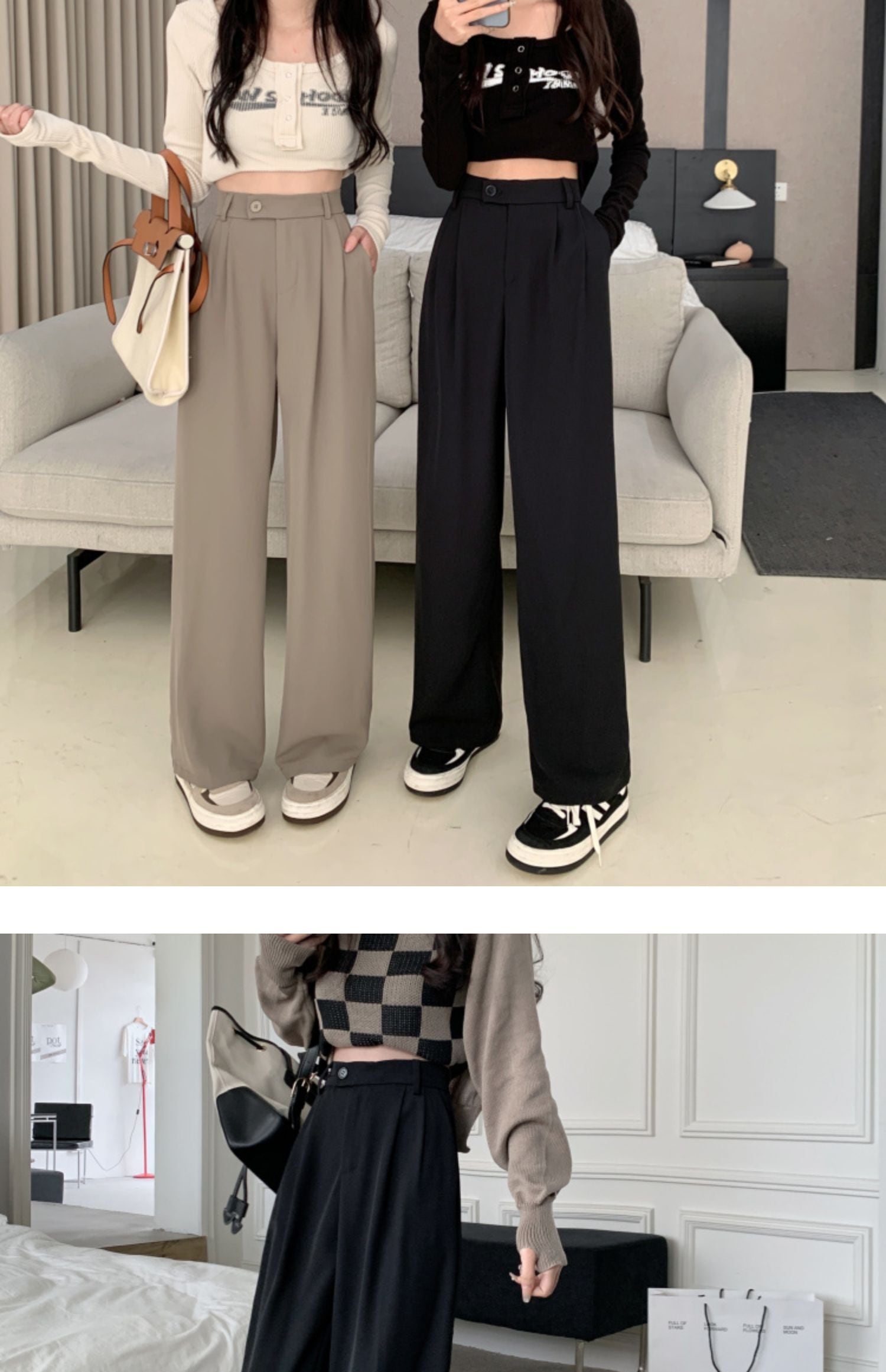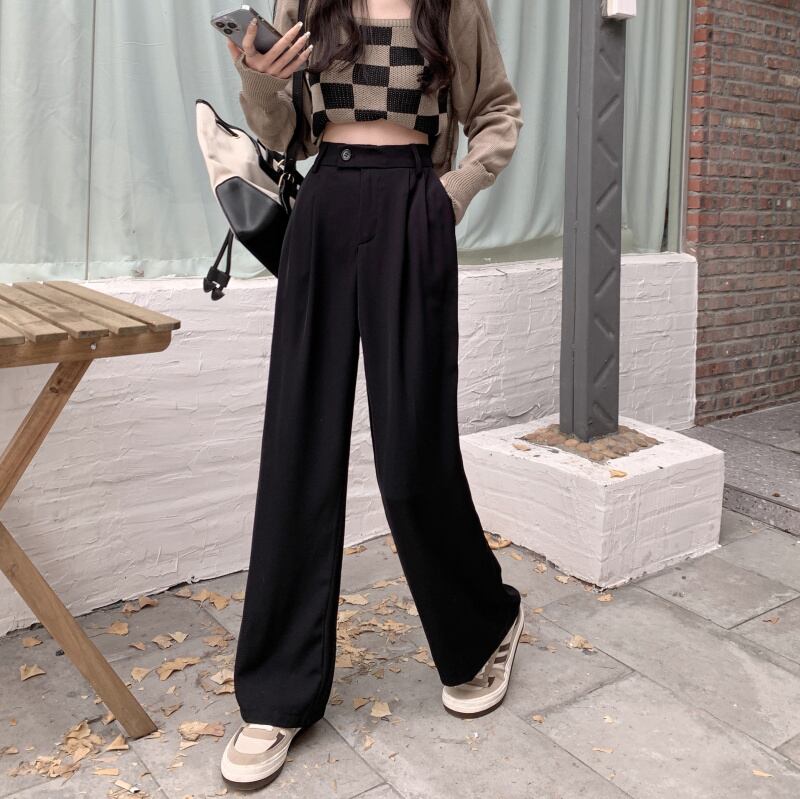 スプリング秋物ウェスト薄手ブラックパンツ ワイドレッグ 春物 オータム ワイドパンツ ウエスト MONROE6220550053