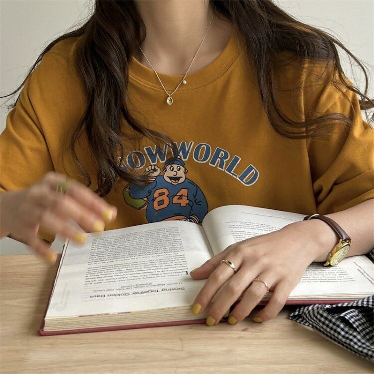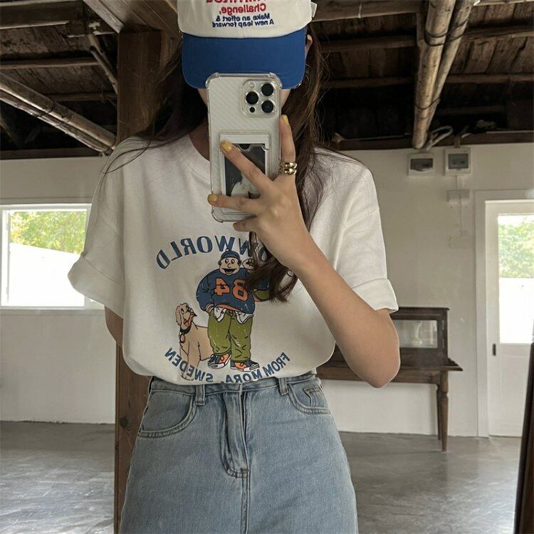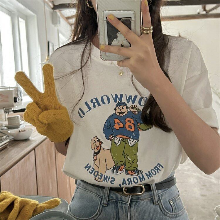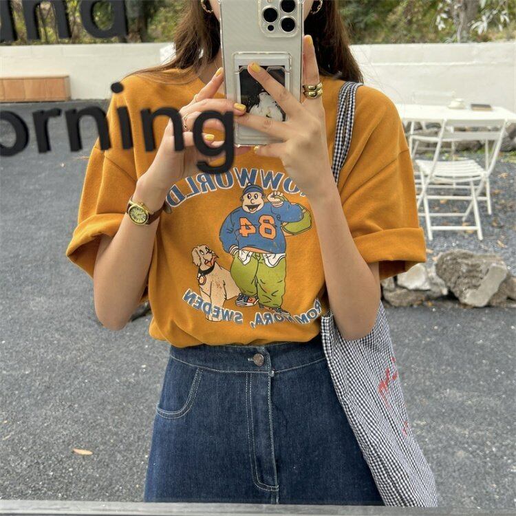 スタンダードプリントTシャツシャツ ゆったり夏服ルーズカジュアルトップス レトロ 夏物 MONROE11929881852