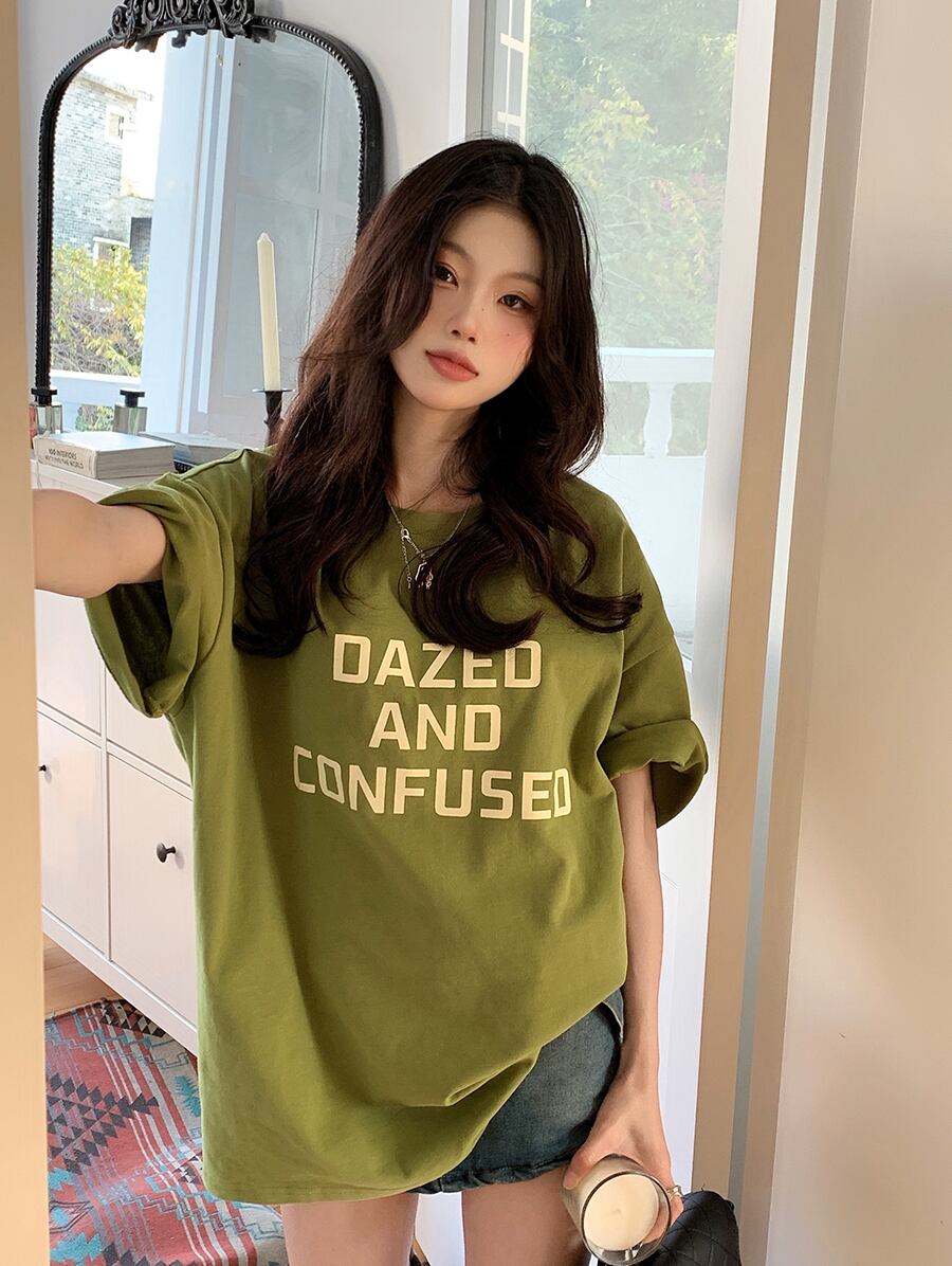 グリーンTシャツ夏服ルーズトップス NEW 夏物 MONROE29394177030