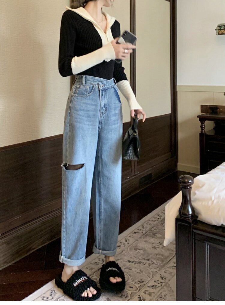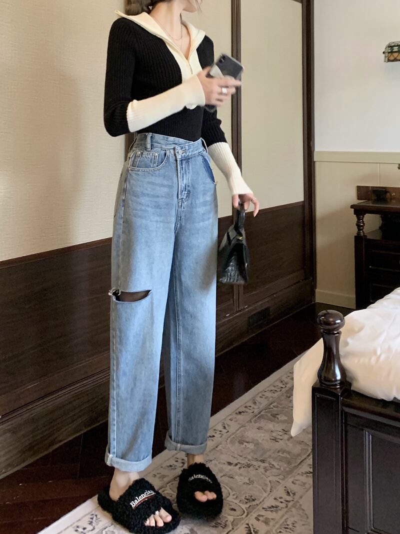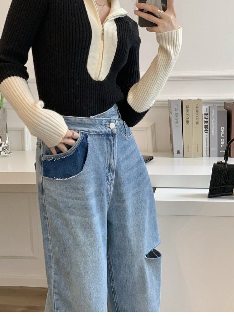 ジーンズ ルーズスプリングハイウェストウェストパンツ ワイドレッグ ストリート 春物 ワイドパンツ ウエスト MONROE10137735644
