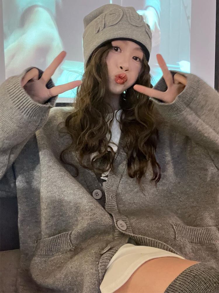 スタンダードニットセーター ジャケット ルーズVネックトップス レトロ ウィンター 冬物 MONROE25905049819