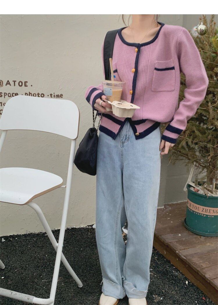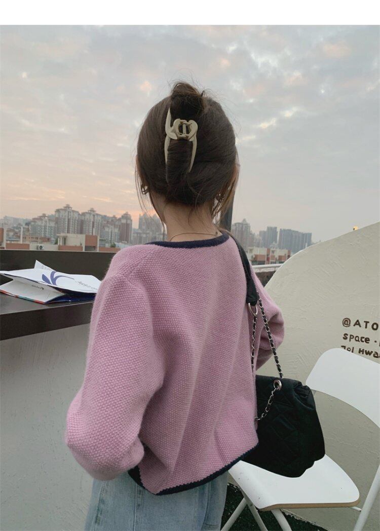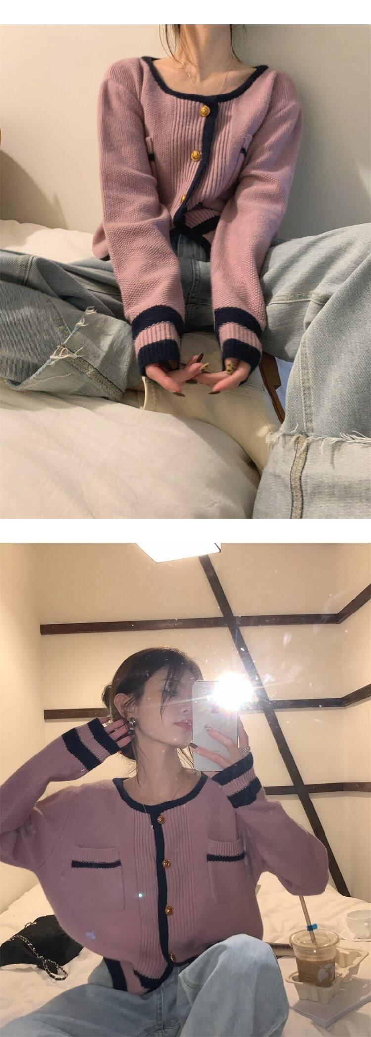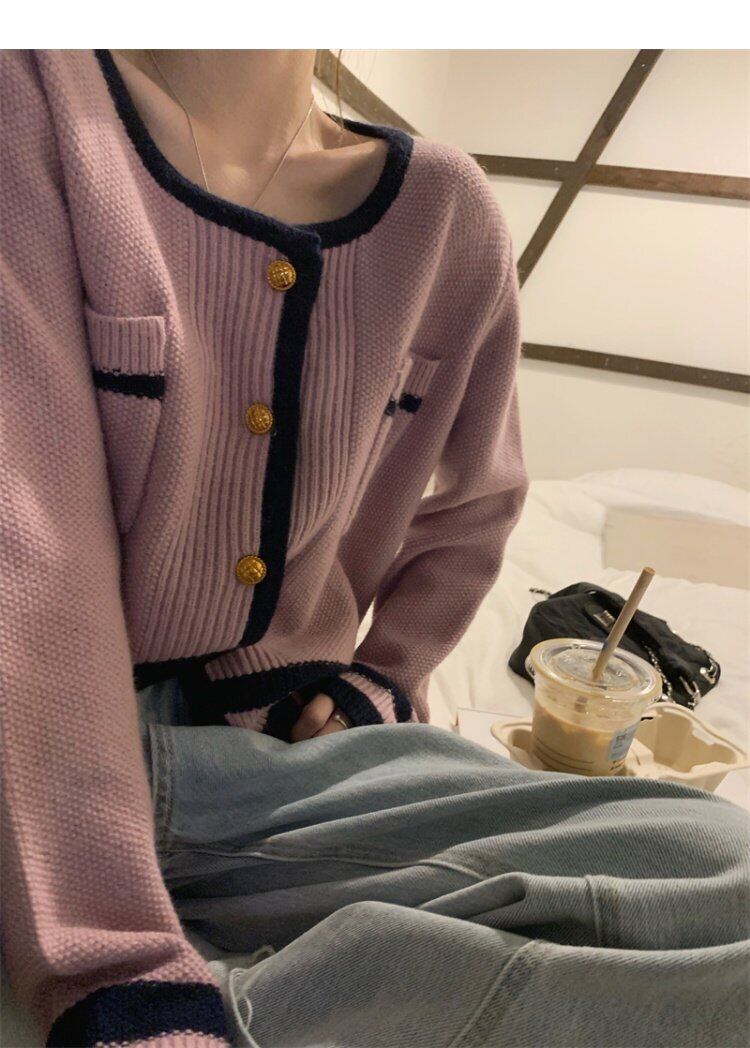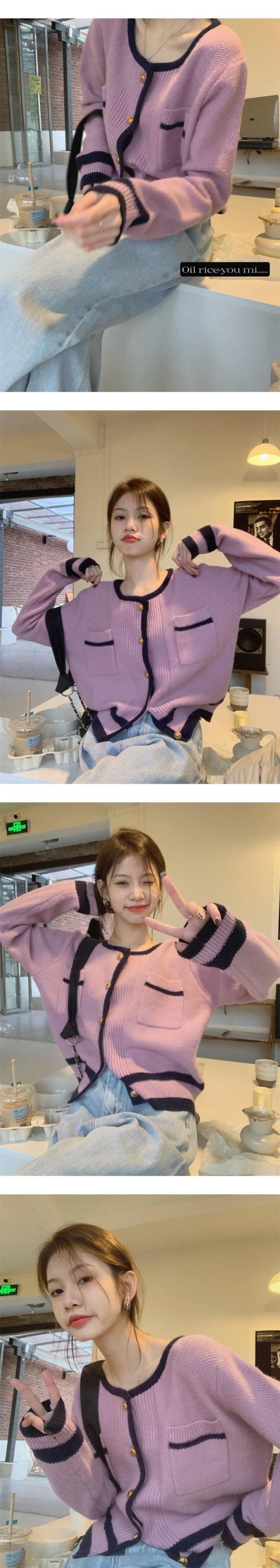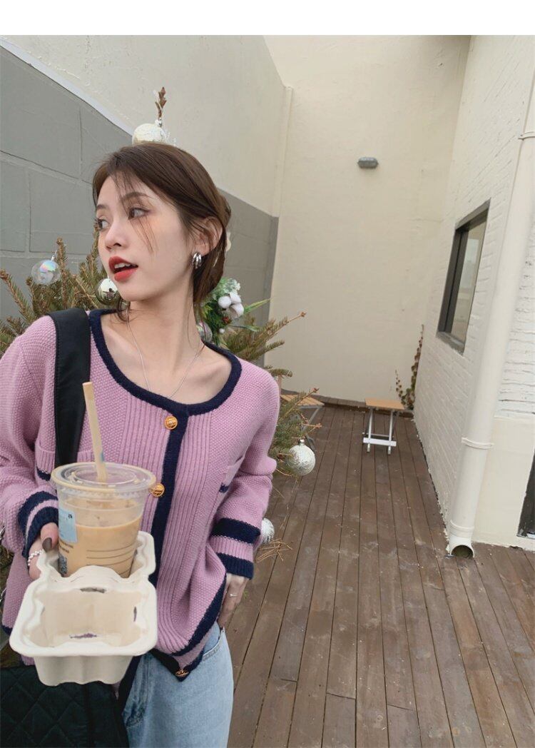 セーター ジャケット スタイルスプリングニットカーディガン 春物 パープル MONROE60901378608