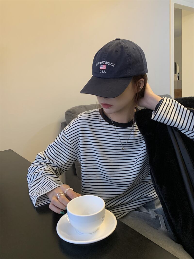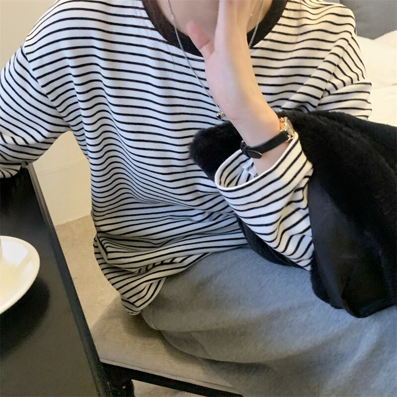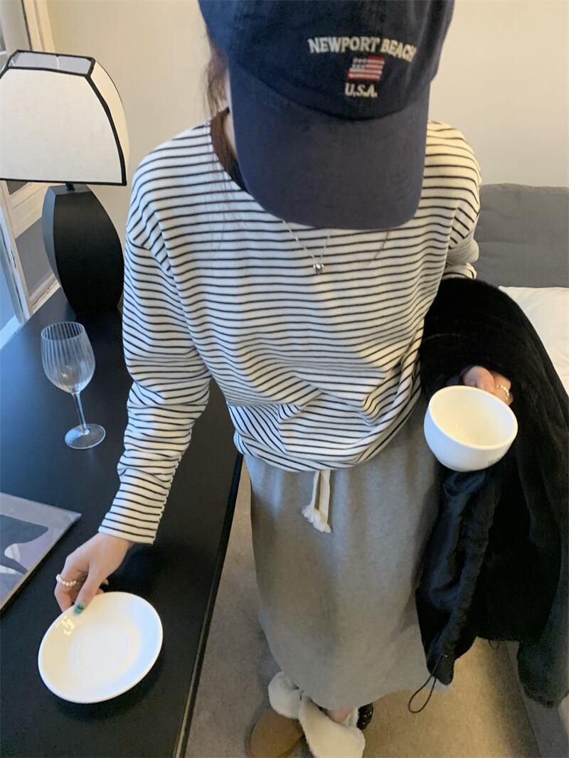 ストライプスタイルTシャツシャツ ゆったりスプリング秋物トップス ロング 原宿 春物 オータム 長袖 MONROE74700067088