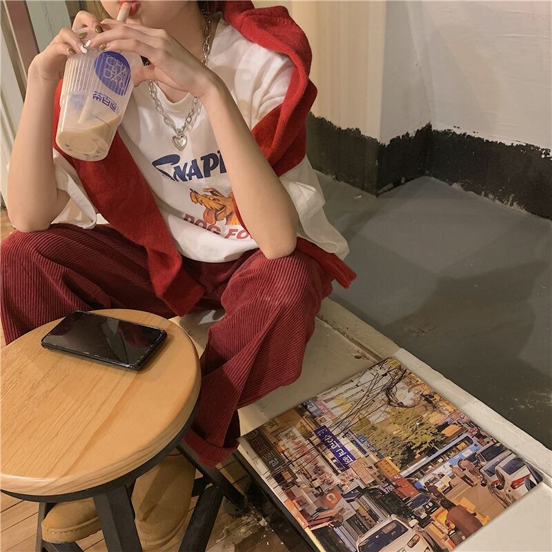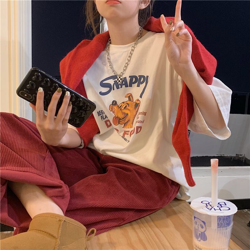 オレンジTシャツNEWスプリングスタイルルーズトップス レッド 春物 MONROE97594573212