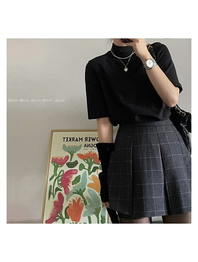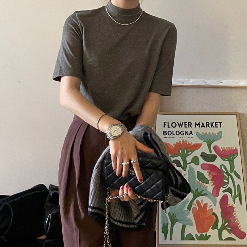 韓国ファッションブラックTシャツシャツ ルーズ薄手ゆったりスプリングトップス 春物 スタイル MONROE90904035798