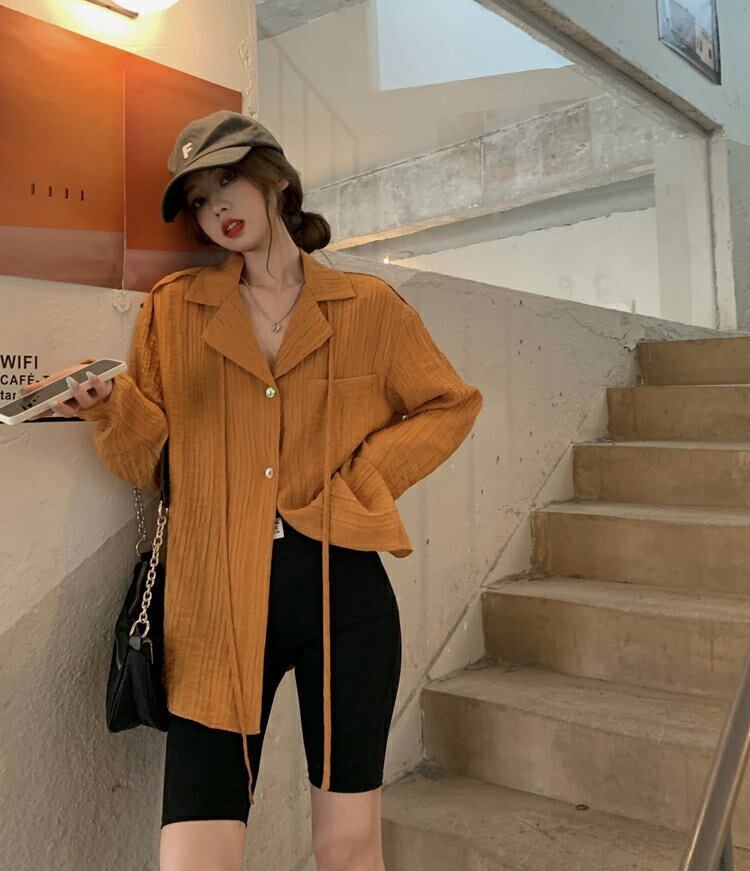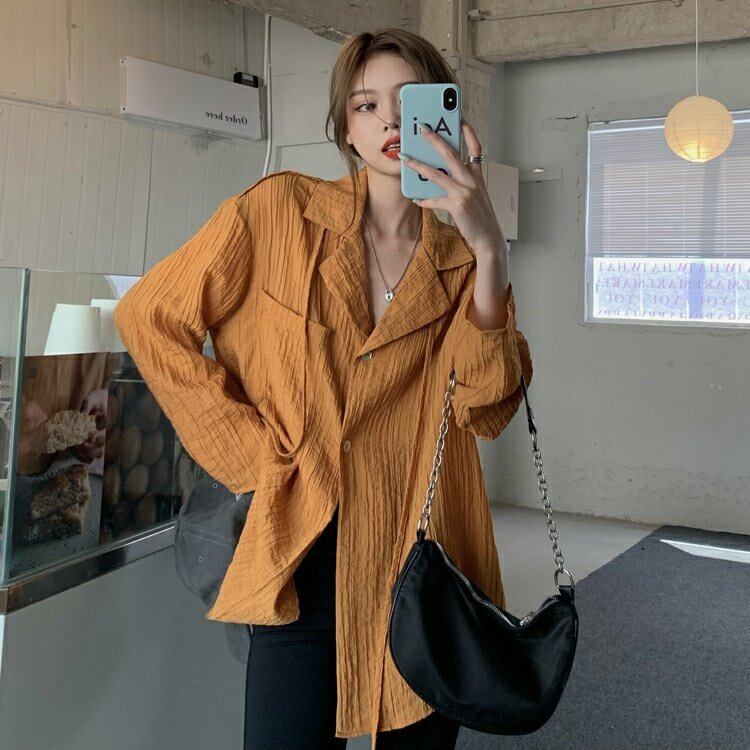 韓国ファッション薄手シャツ スタンダードルーズジャケット スプリングトップス レトロ 春物 スタイル MONROE7610179658