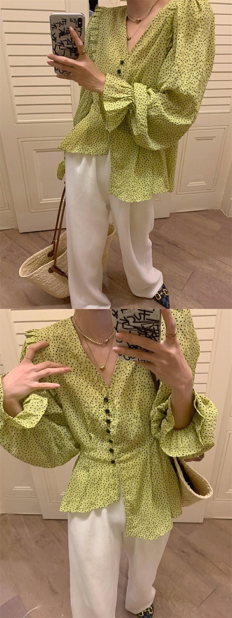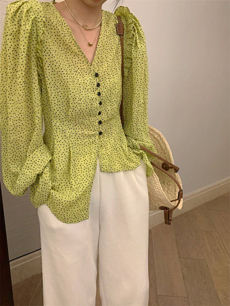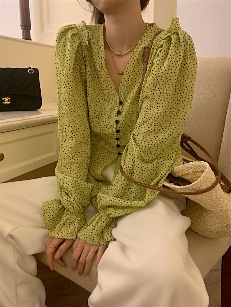 Vネックトップス スプリンググリーンシャツ 春物 MONROE94553986450