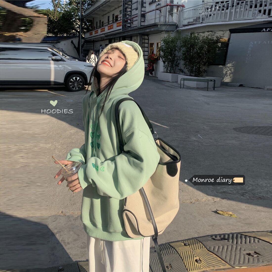 フードセーター スプリング秋物韓国ファッションスタイルトップス ロング 春物 オータム 長袖 MONROE37839574397