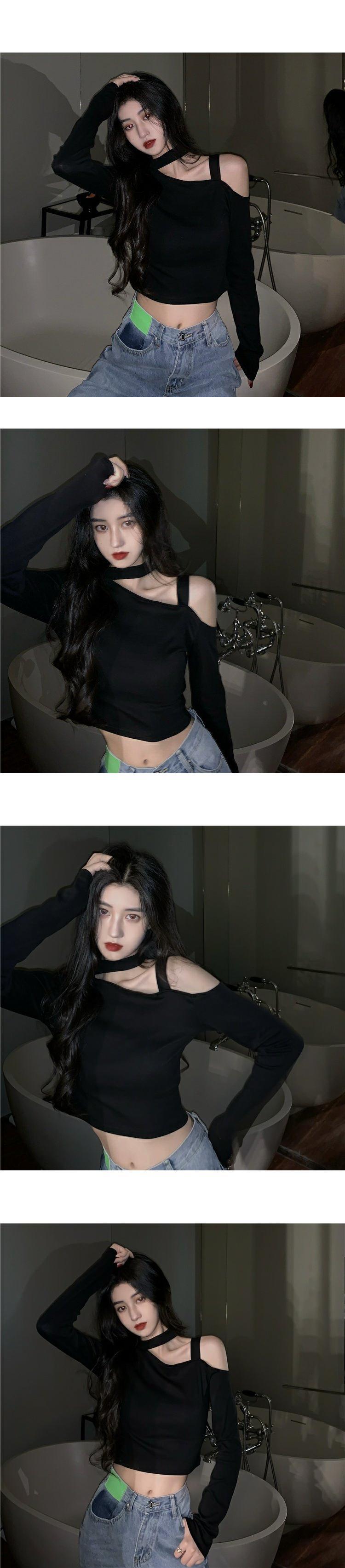 スプリングTシャツショートクロップドブラックプルオーバー トップス ロング ストリート 春物 長袖 MONROE14275149563