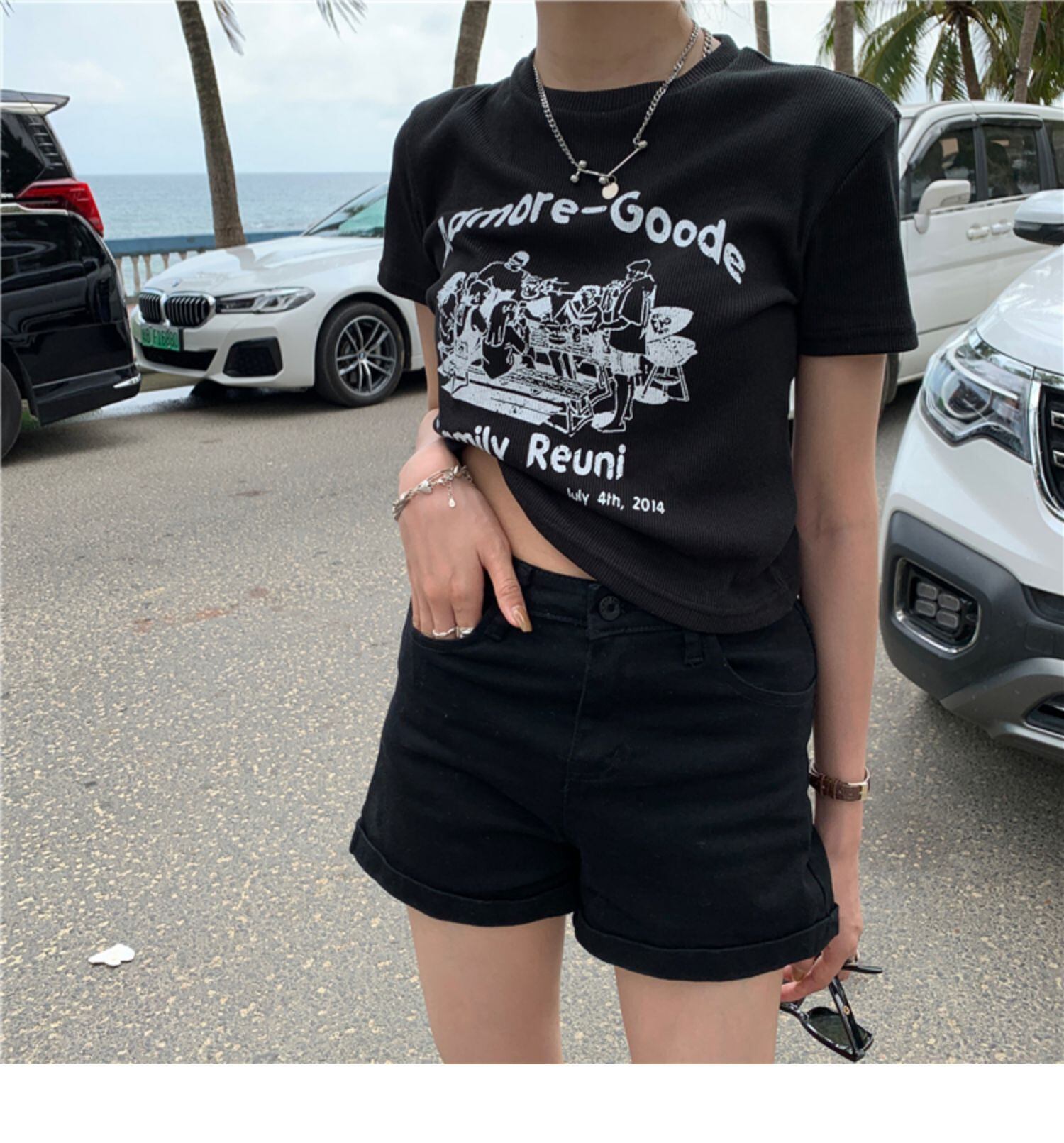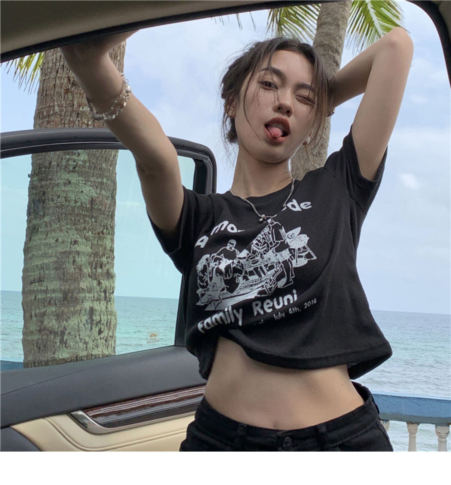 スタイルNEWスタンダードプリントショートTシャツシャツ スプリングスリムゆったりトップス レトロ 原宿 春物 MONROE23694698326