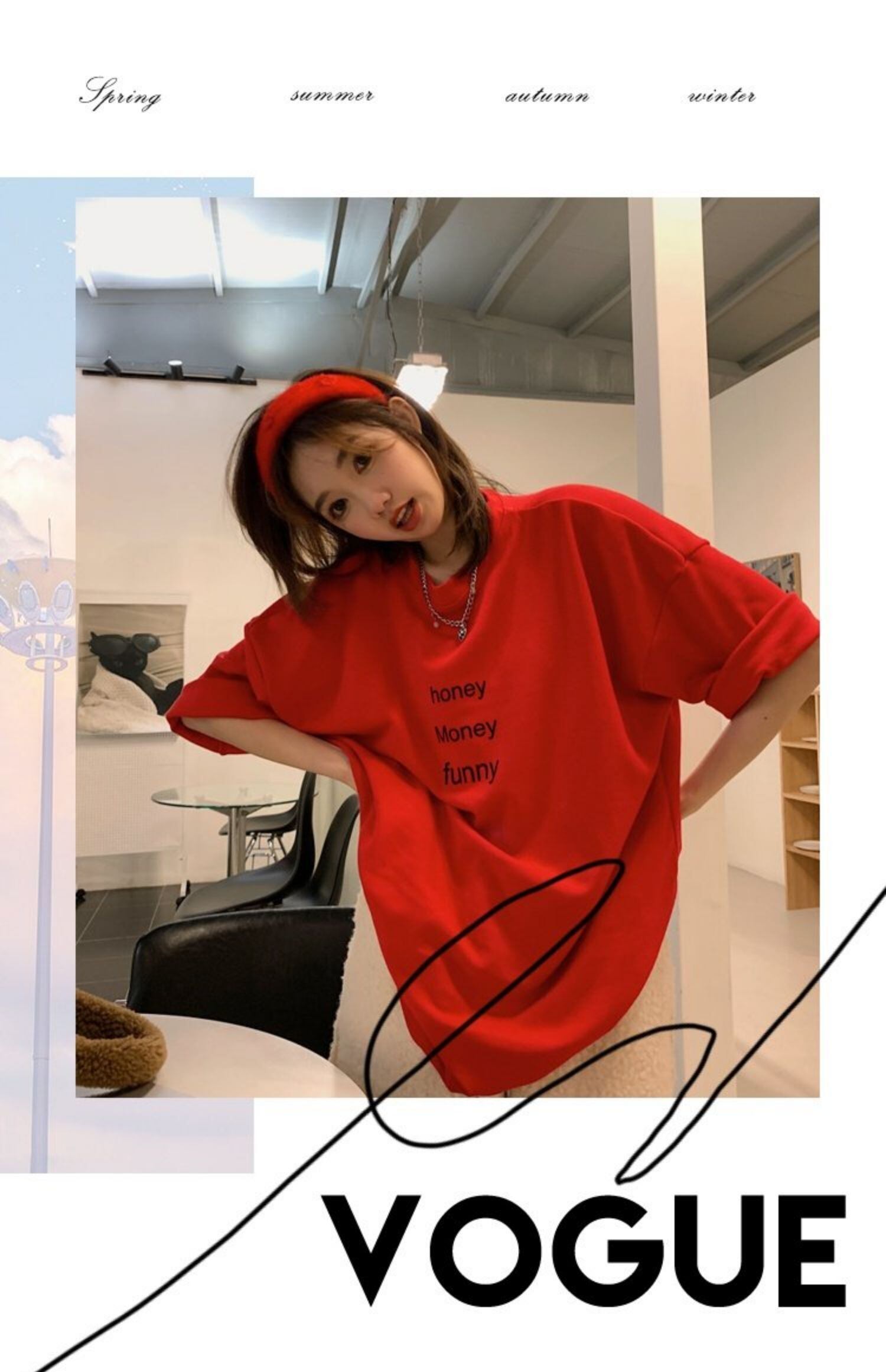 レッドTシャツシャツ スプリングルーズトップス 秋物ゆったり 春物 オータム MONROE13077050848