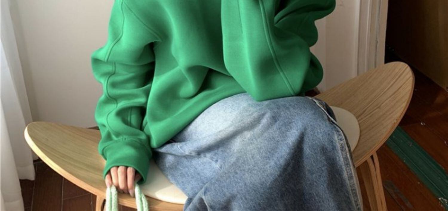 色:緑のセーター