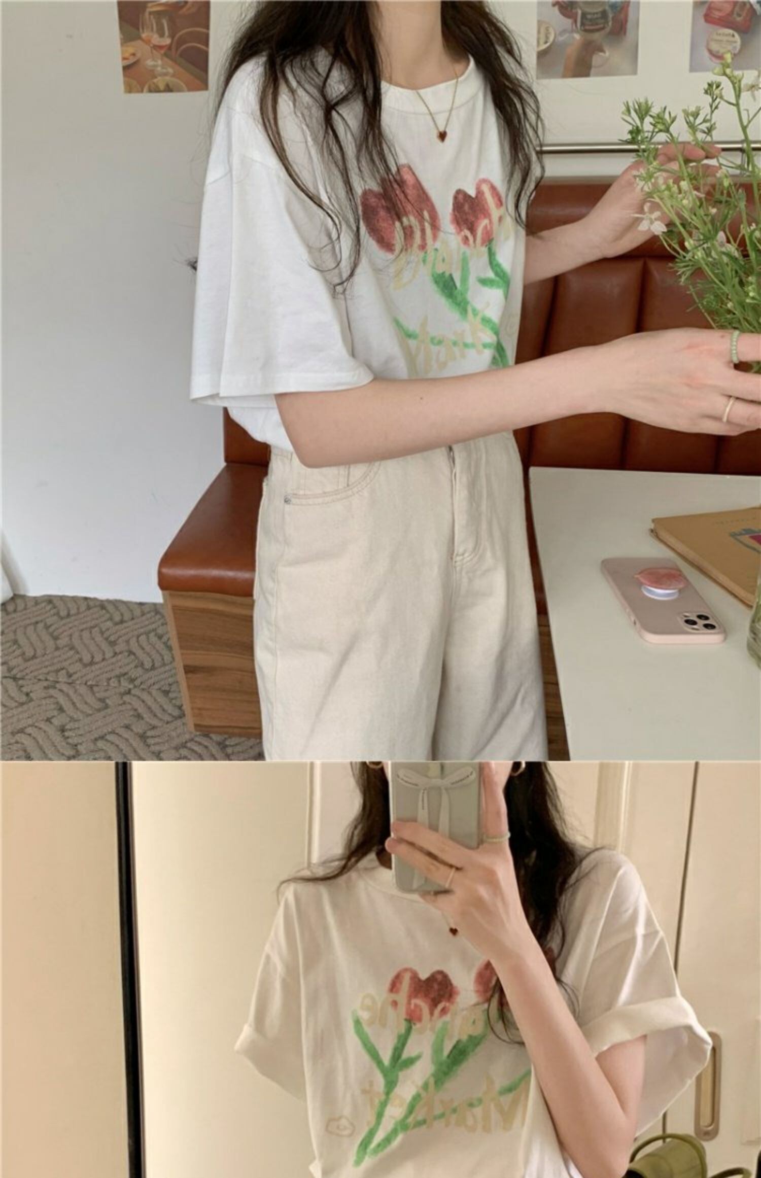 スプリング夏服TシャツレディースNEWホワイトゆったりトップス 春物 夏物 MONROE33333294812