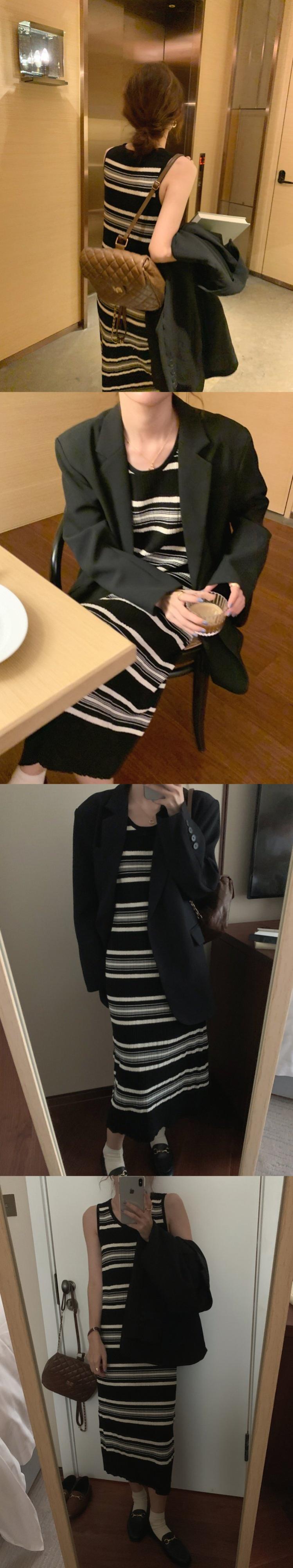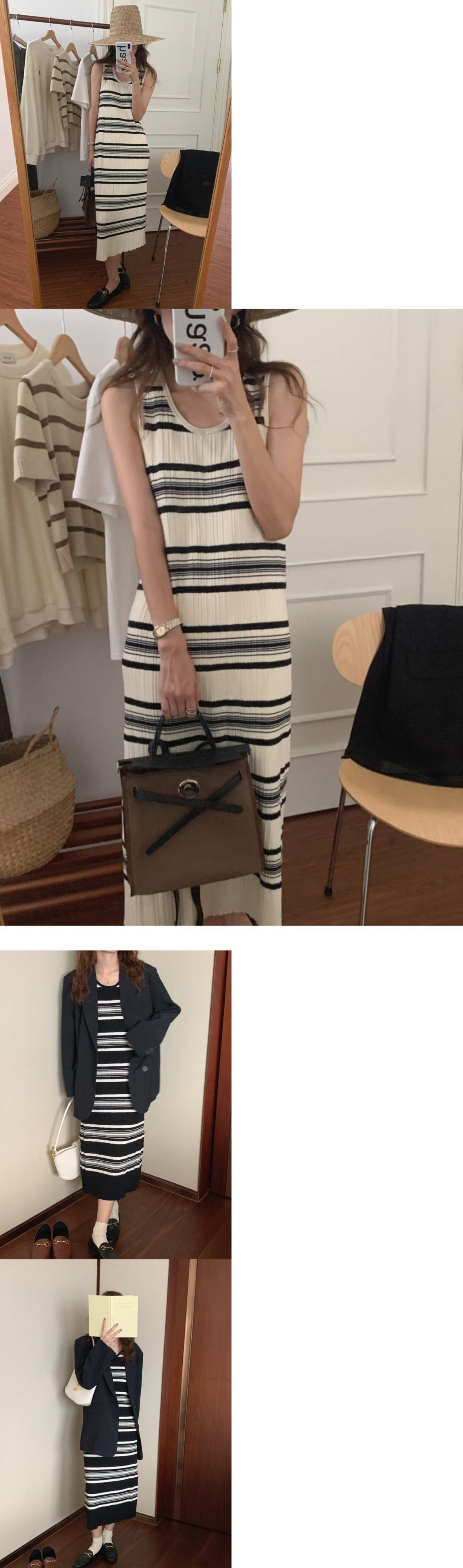 ストライプニットワンピース夏服スリムロングスカート 夏物 MONROE26734786015