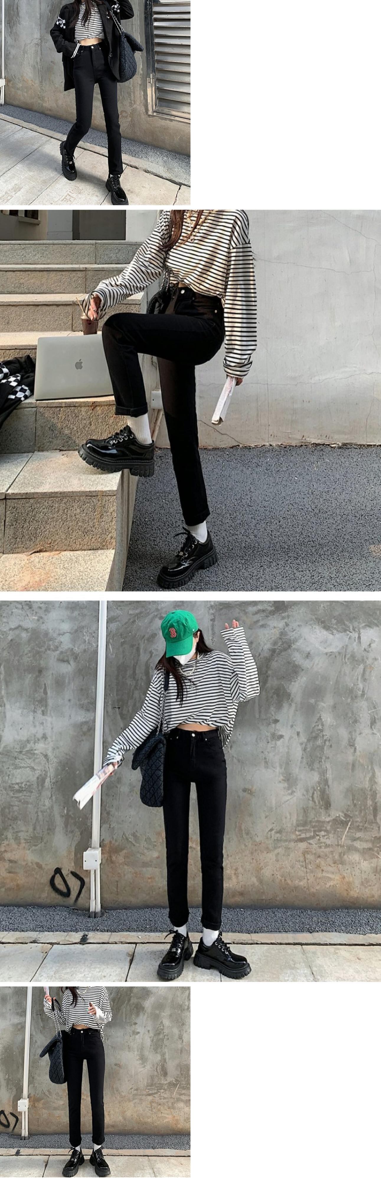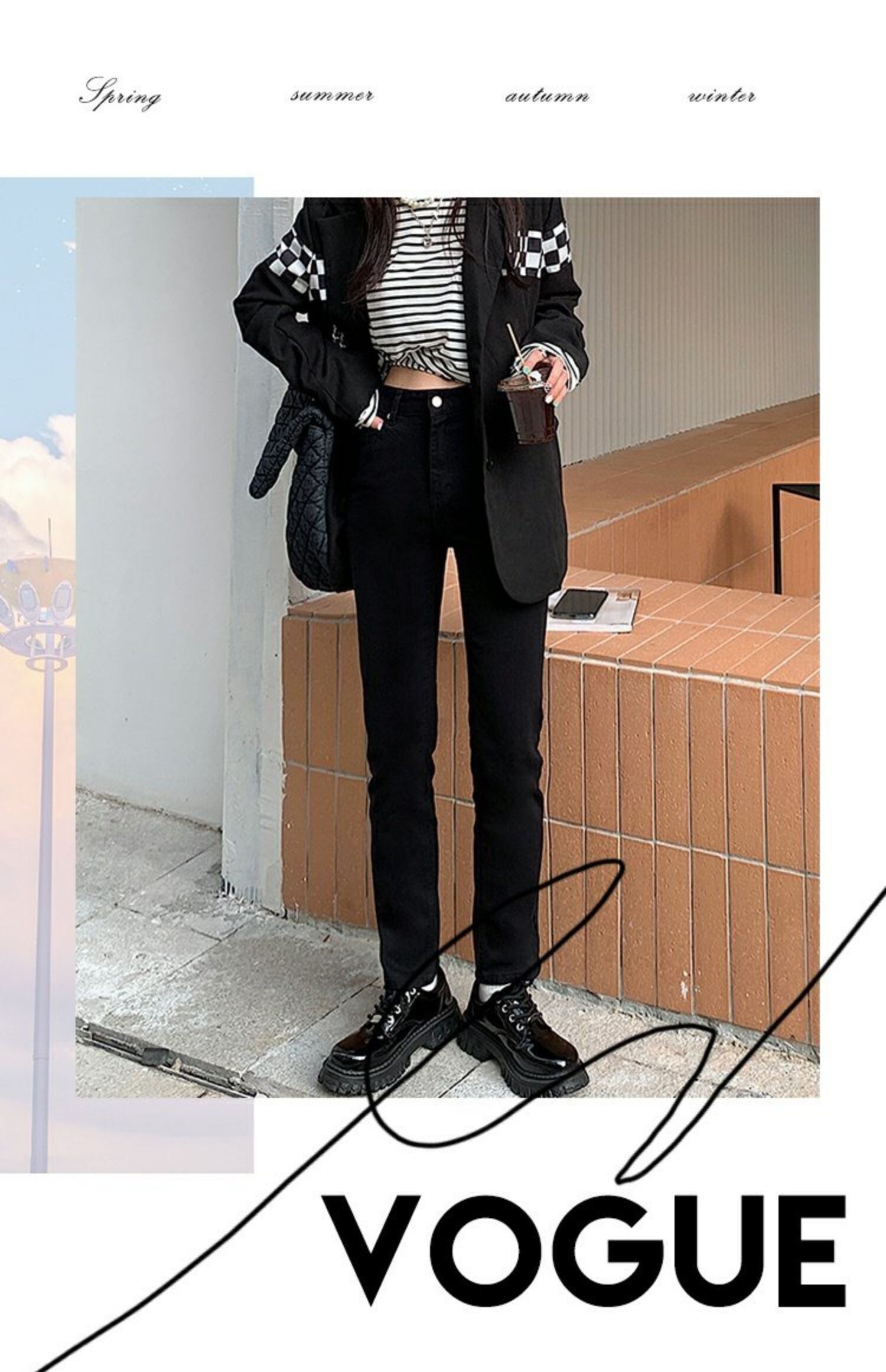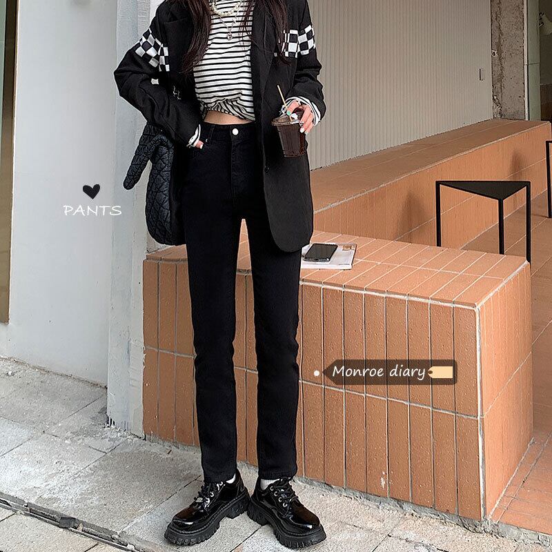 韓国ファッション薄手スキニージーンズ スプリング秋物ブラッククロップドパンツ 春物 オータム スタイル MONROE29602518815