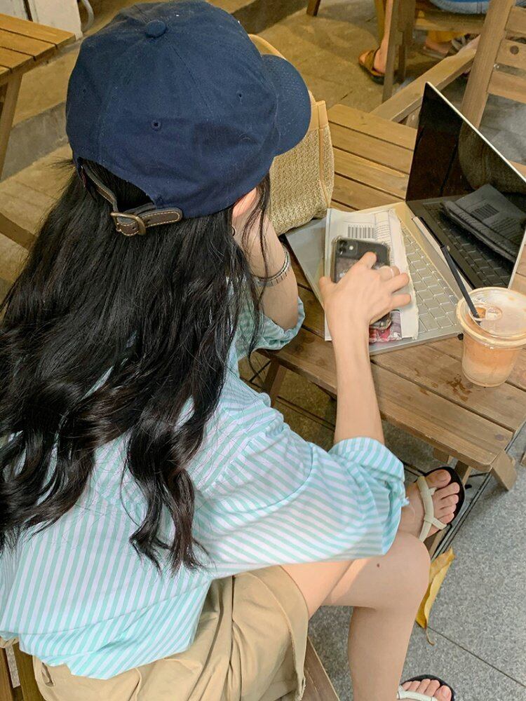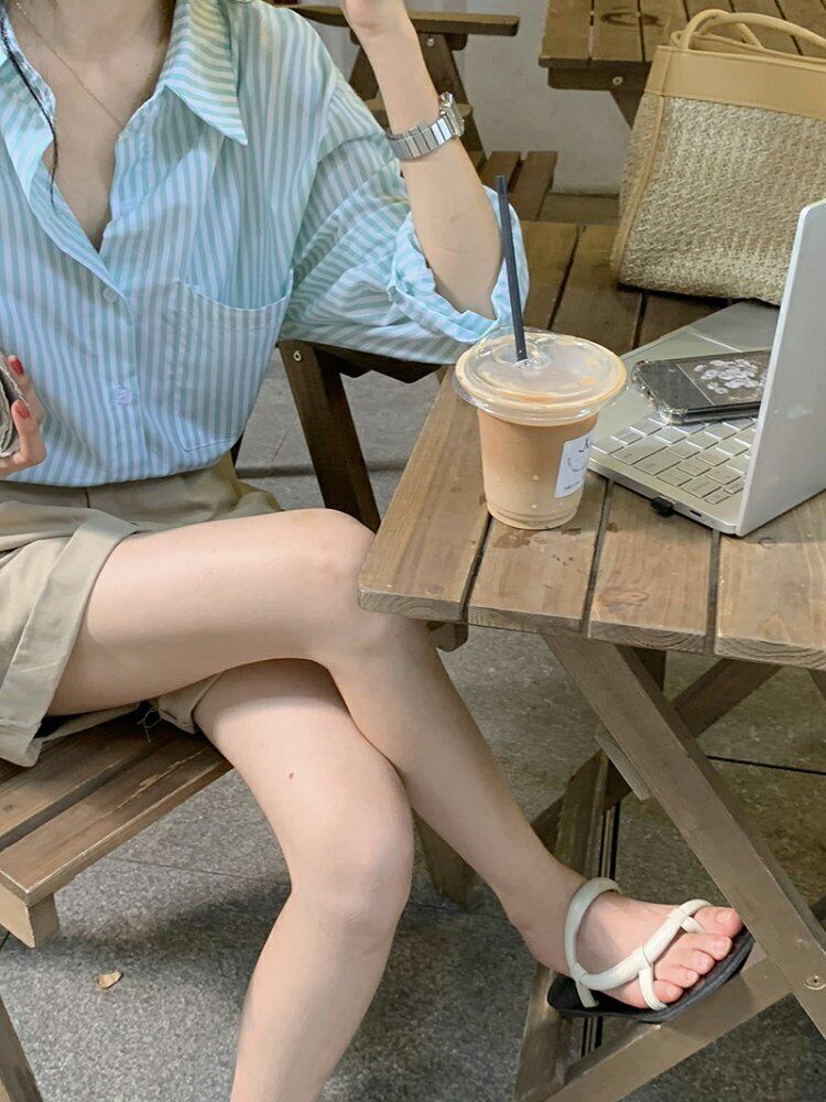 韓国ファッションストライプスタンダードシャツ ルーズジャケット スプリング薄手トップス レトロ 春物 スタイル MONROE94344970349