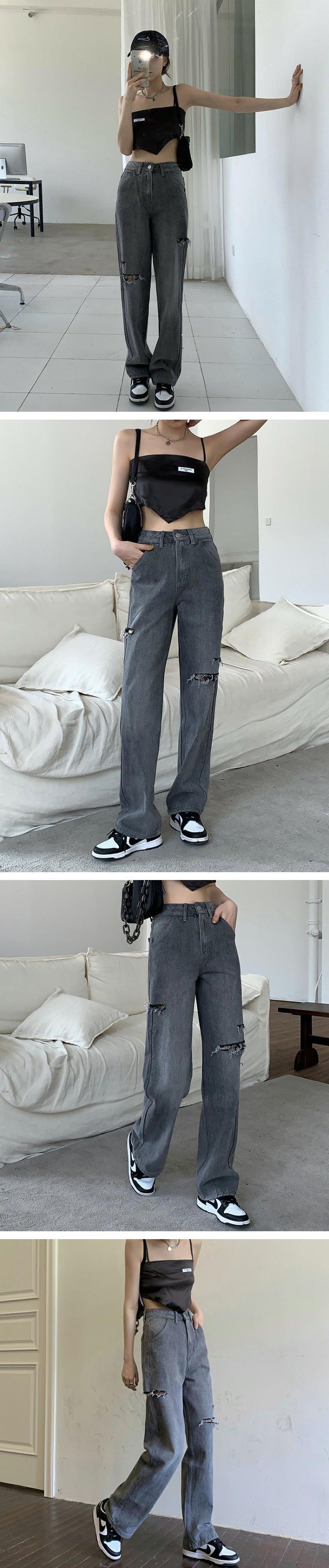 スタイルNEWスタンダードブラックグレージーンズ スプリングルーズパンツ レトロ 春物 MONROE43112730016