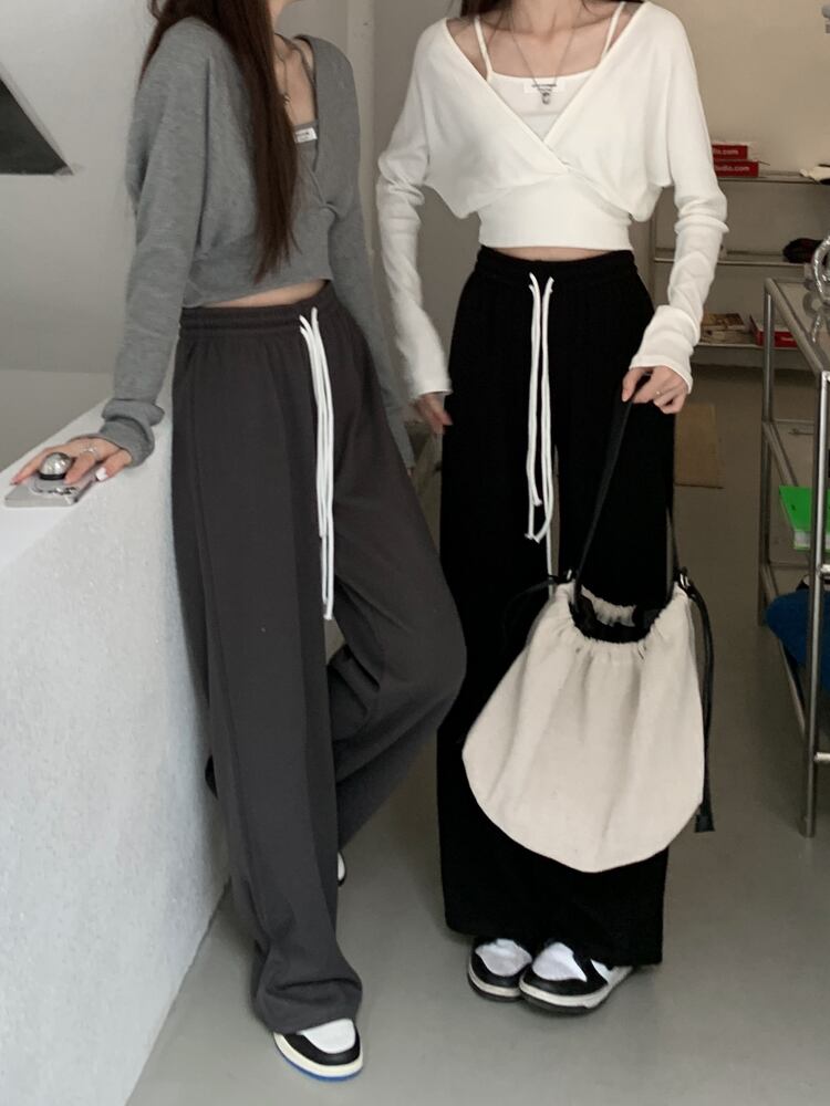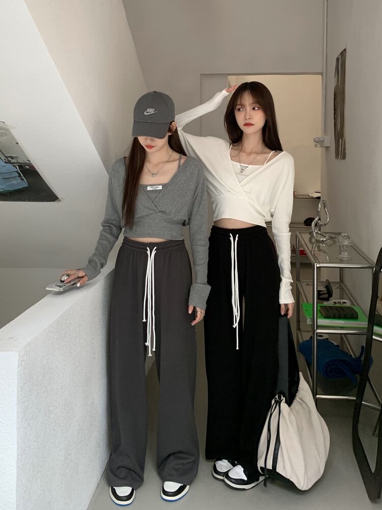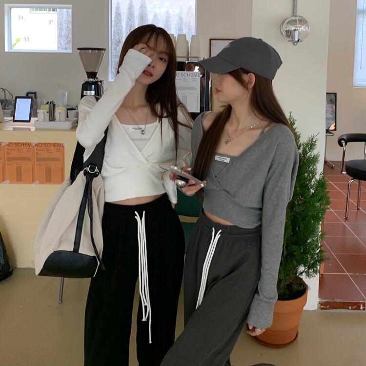 色:グレートップ,ホワイトトップ,グレーパンツ,黒いズボン
