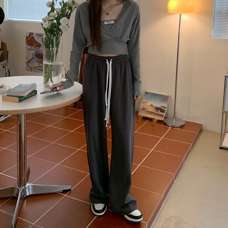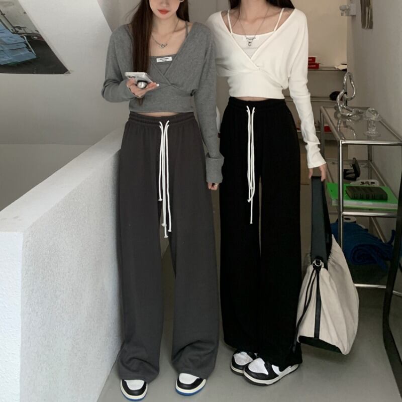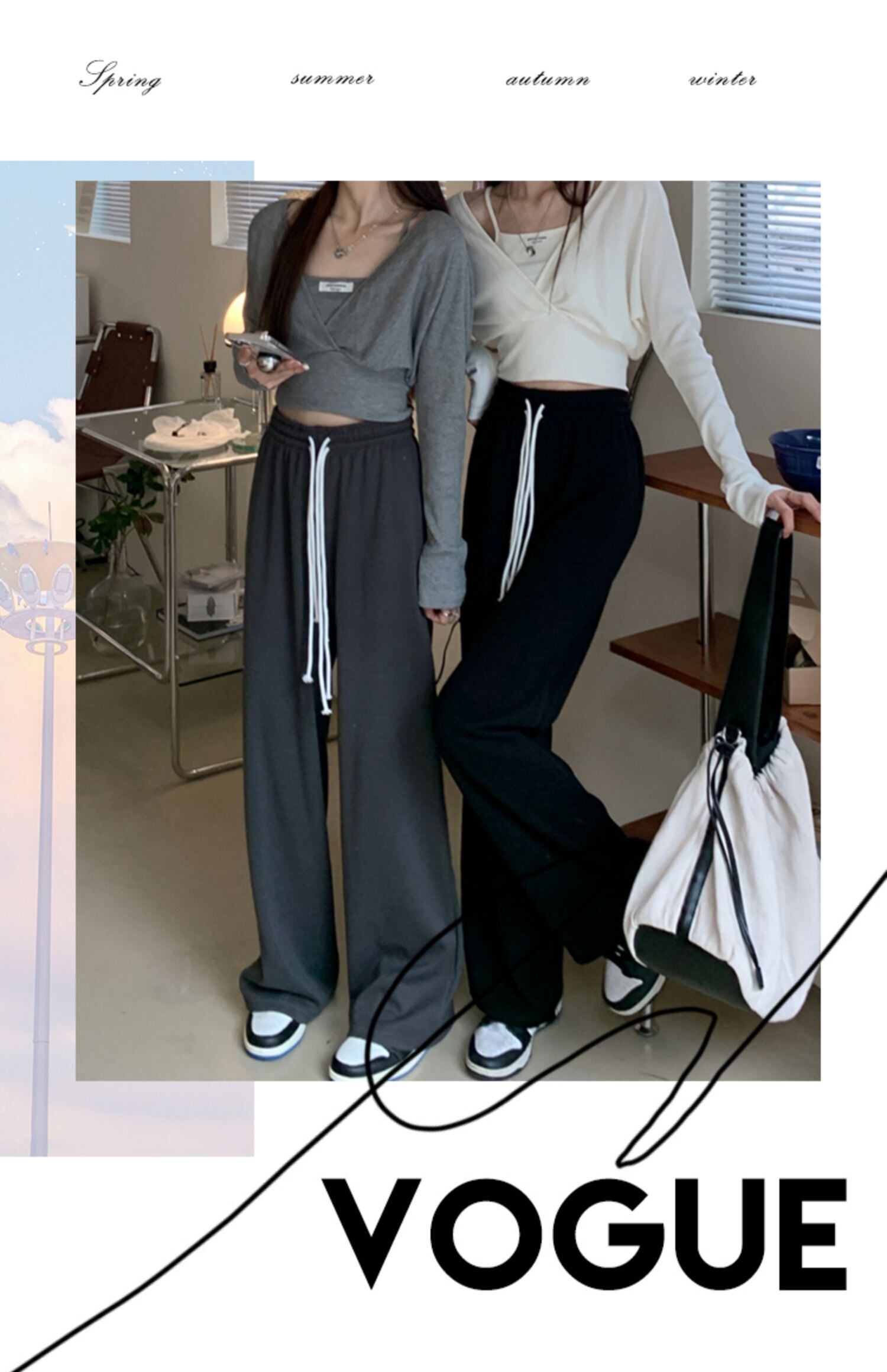 ブラックパンツ スプリング秋物ハイウェストウェストルーズカジュアル 春物 オータム ウエスト MONROE3705642774