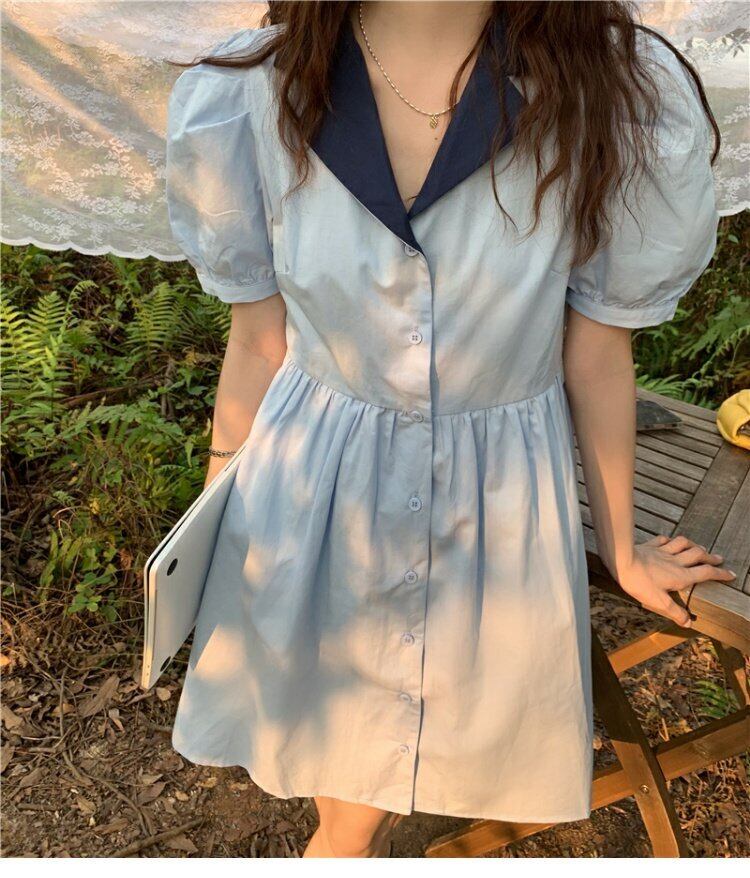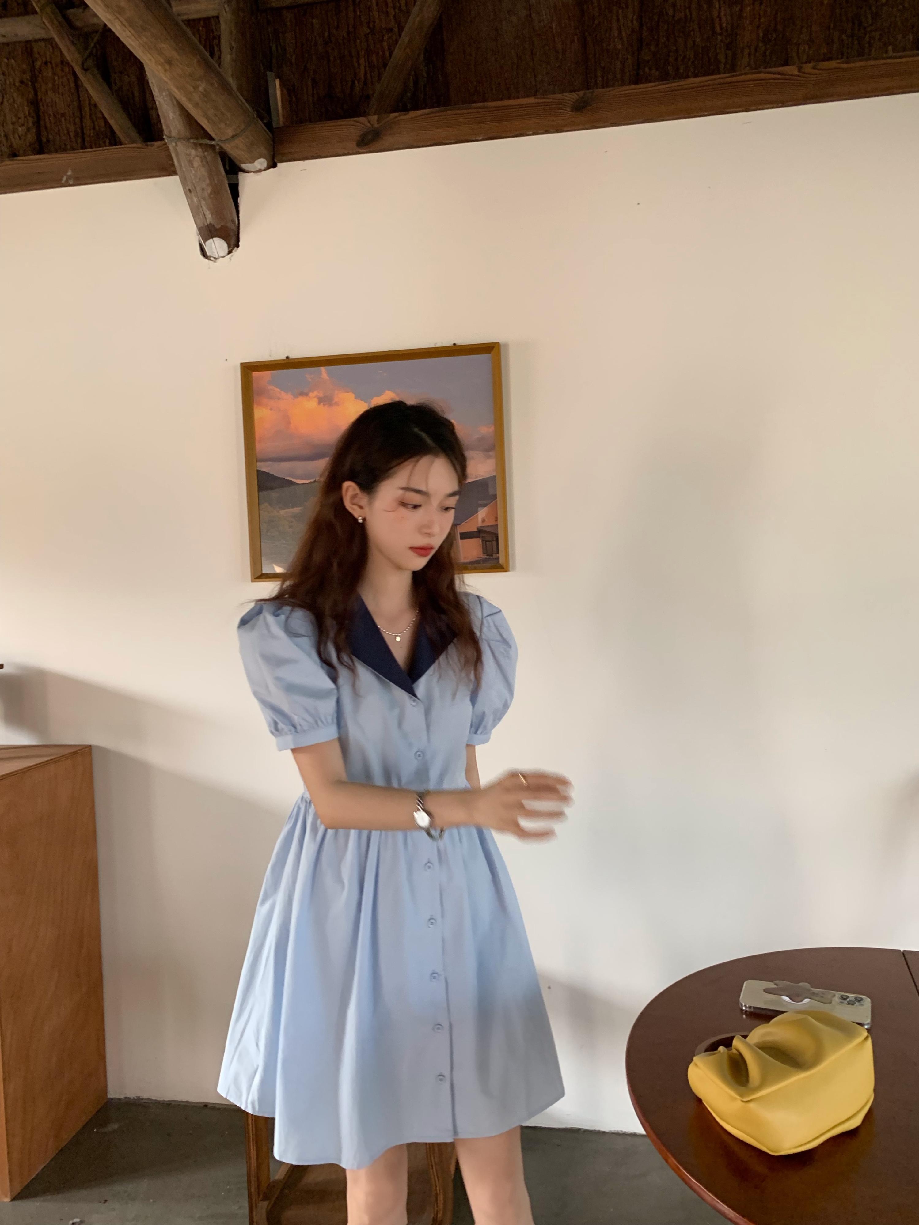 薄手ブルーワンピースレディーススプリングウェストスリムVネックスカート 大人ガーリー スウィート キュート カジュアル 春物 ウエスト MONROE92065249349