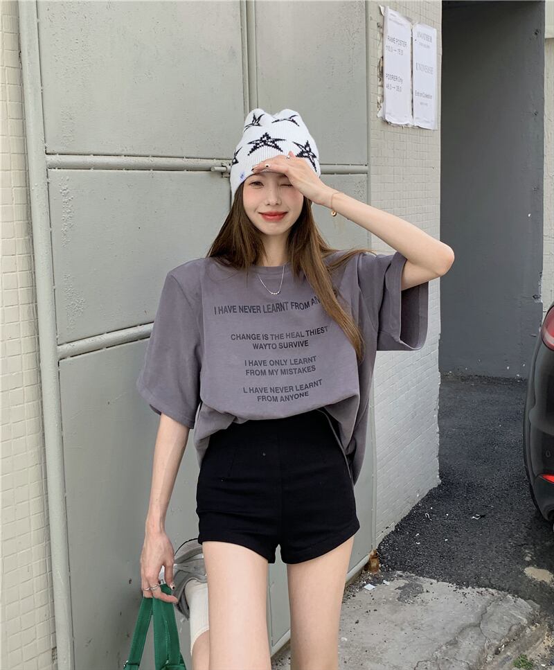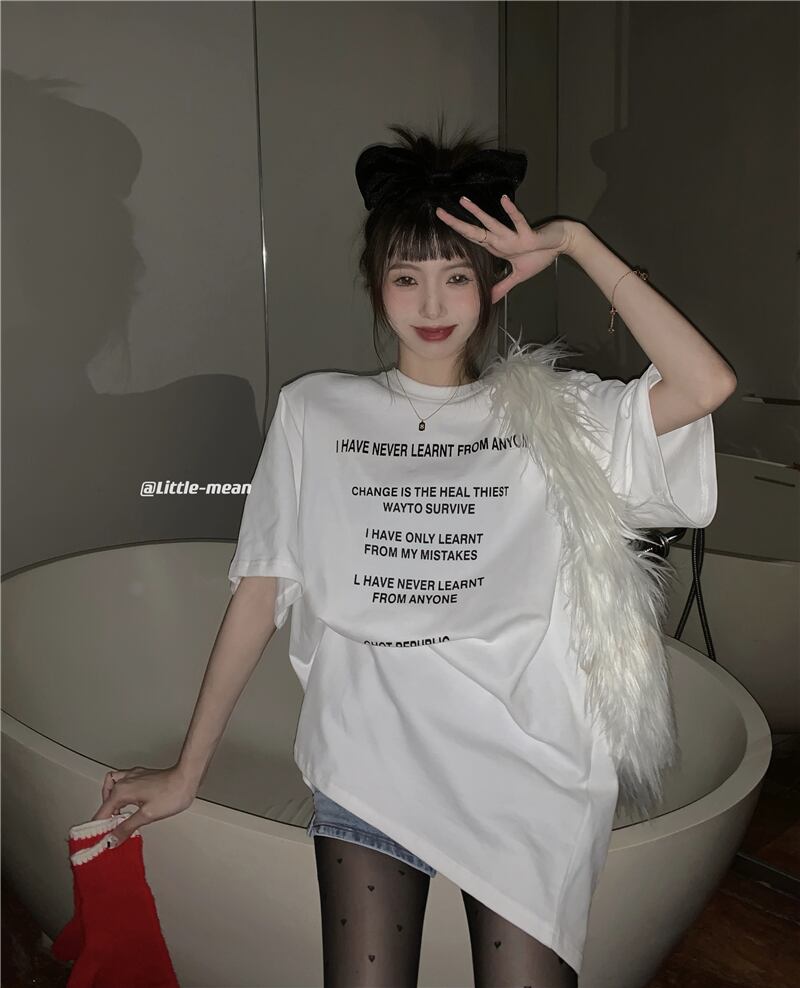ルーズNEWブラックプリントTシャツスプリングカジュアルトップス 春物 ミドル丈 MONROE43778197845