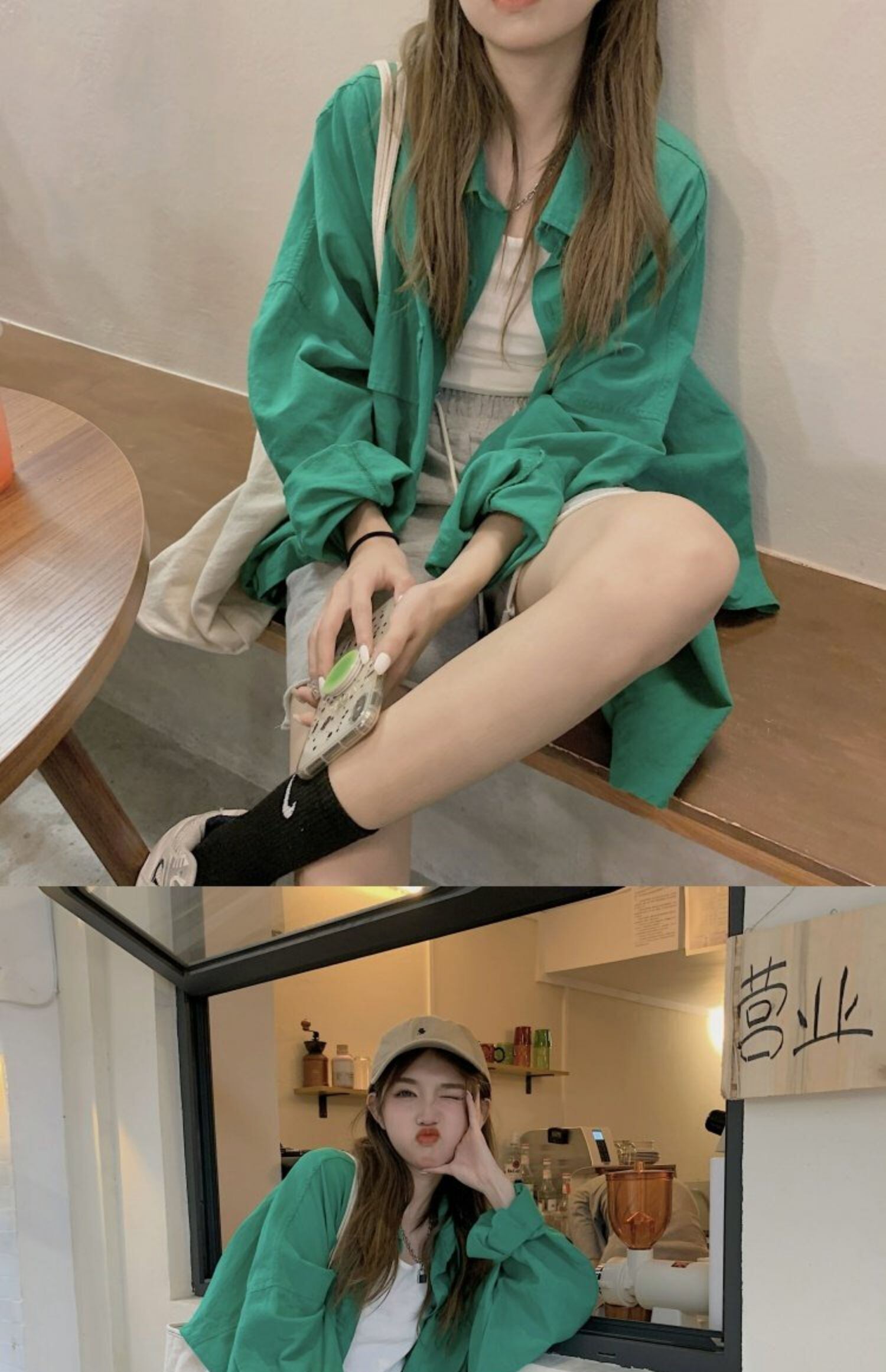 韓国ファッションルーズシャツ グリーンコート スプリングカジュアルトップス 春物 スタイル MONROE28886462004