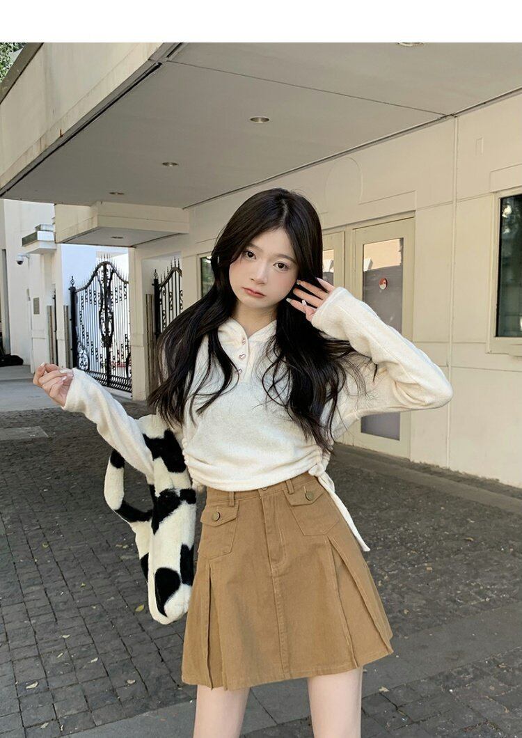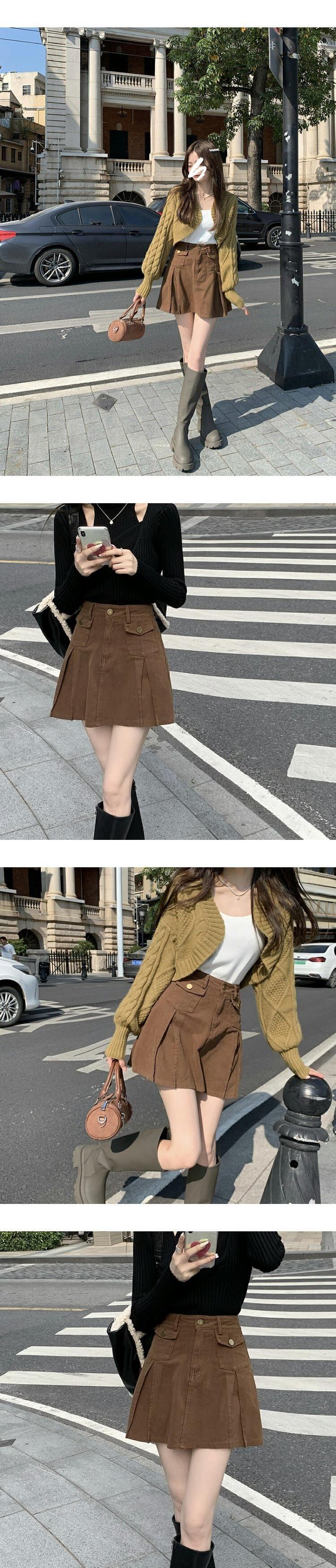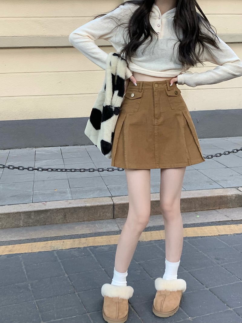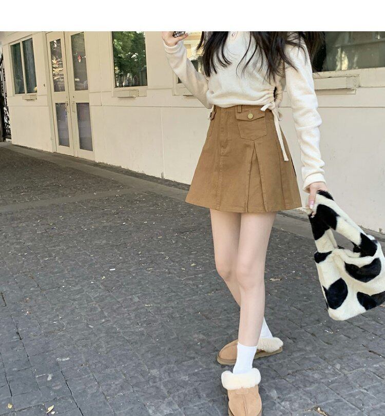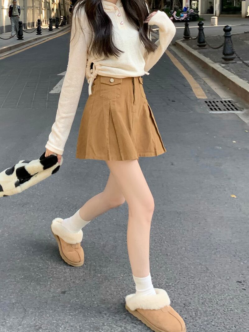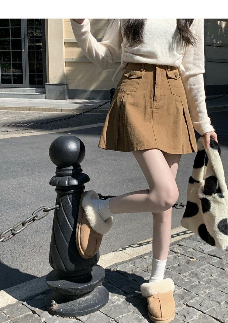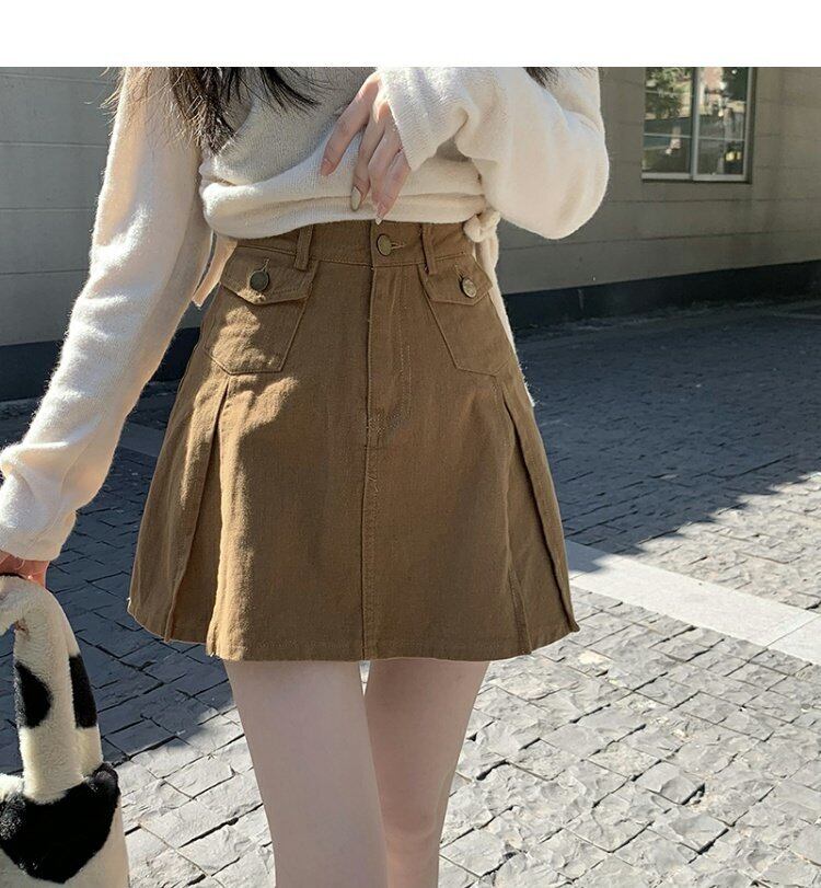 韓国ファッションハイウェストウェストスリムAラインスカート スプリング秋物ショートプリーツ 春物 オータム スタイル ウエスト MONROE47257791808