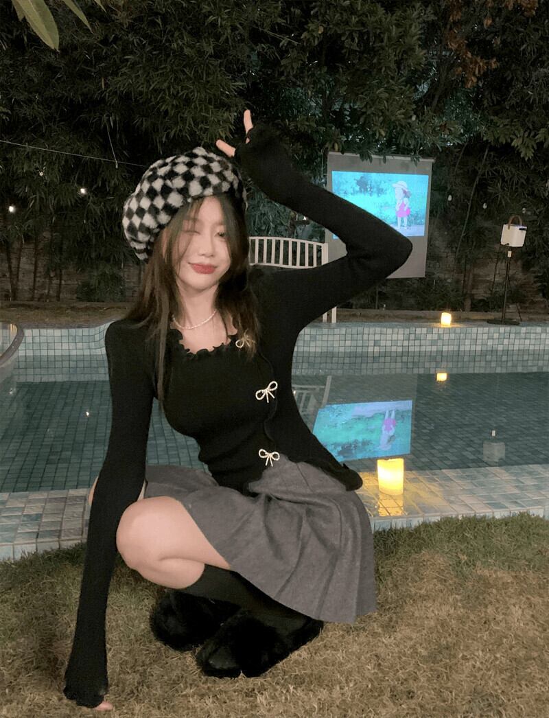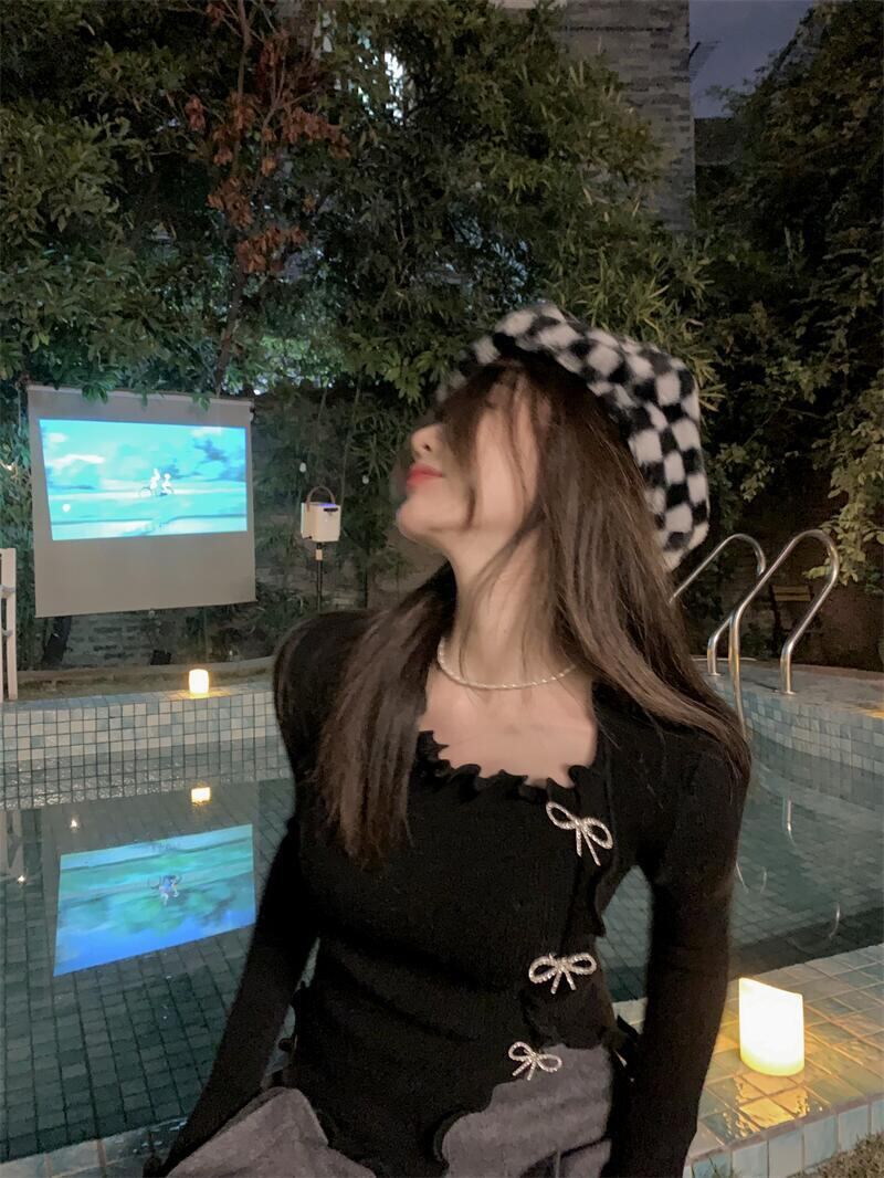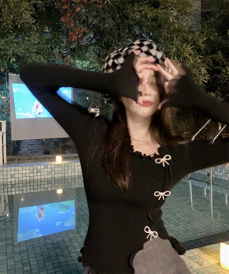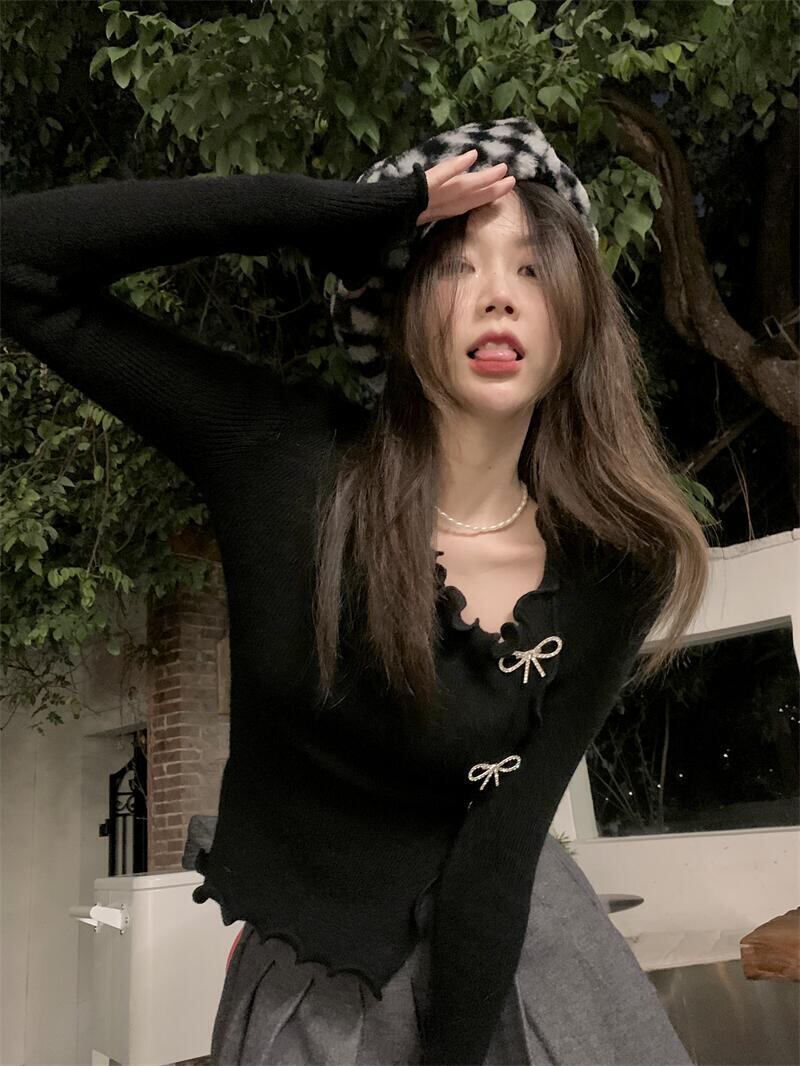 トップス スプリングブラックニットセーター 大人ガーリー スウィート キュート カジュアル 春物 NEW MONROE40048300526