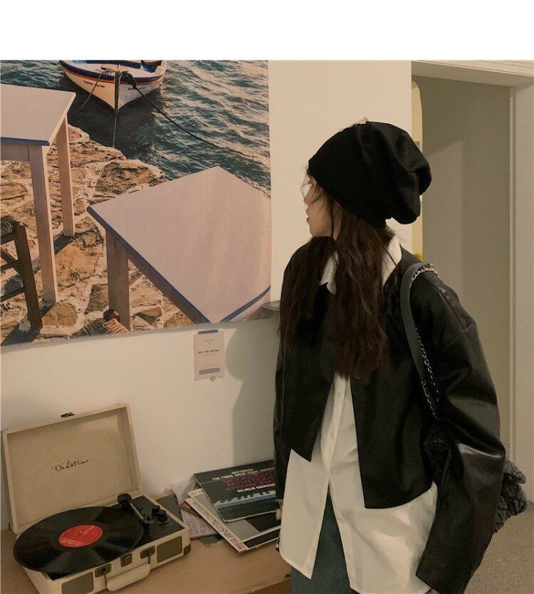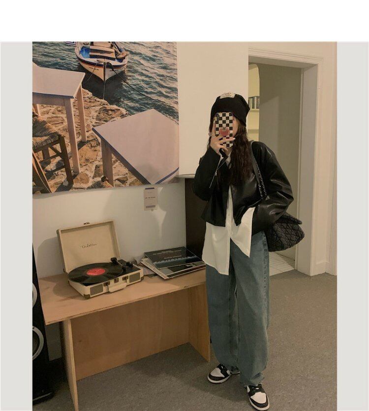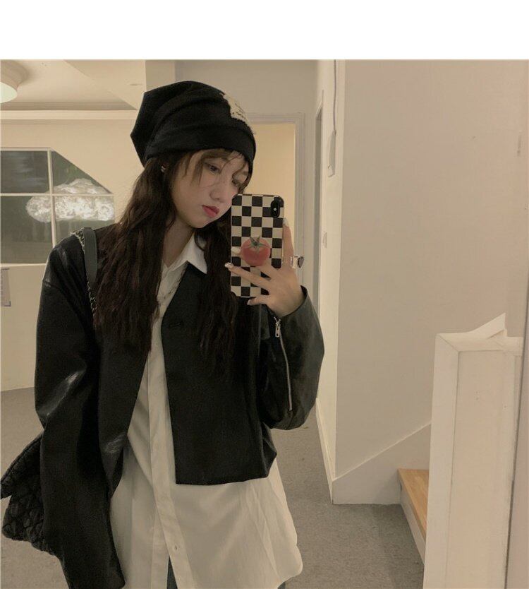 ルーズ韓国ファッションブラックレザージャケット スプリングショーツ トップス 春物 スタイル MONROE31132088708
