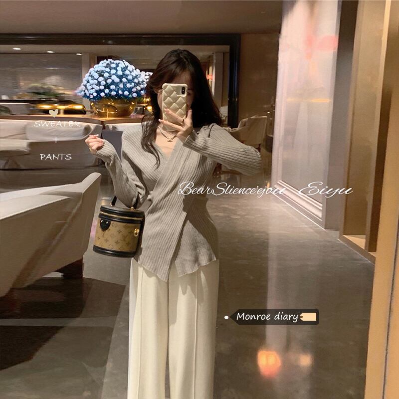韓国ファッションウェストスリムニットセーター スプリング秋物ゆったりシャツ ジャケット ロング 春物 オータム スタイル 長袖 ウエスト MONROE38521655008