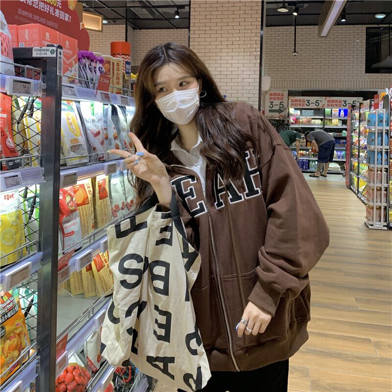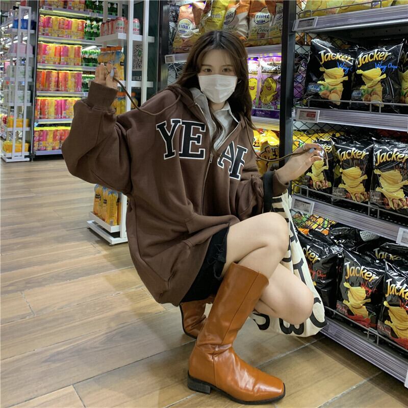 スタンダードルーズフードカーディガンジャケット スプリング秋物カジュアルジッパートップス レトロ 春物 オータム MONROE90814887291