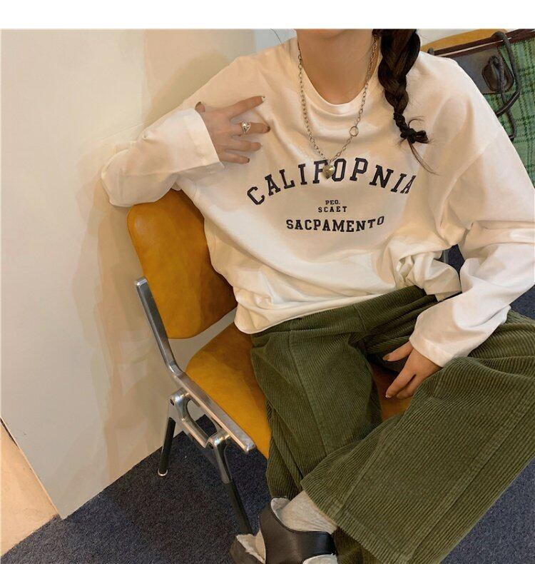 NEWプリントTシャツシャツ スプリング秋物スタイルルーズカジュアルゆったりトップス ロング 春物 オータム 長袖 MONROE99213294486