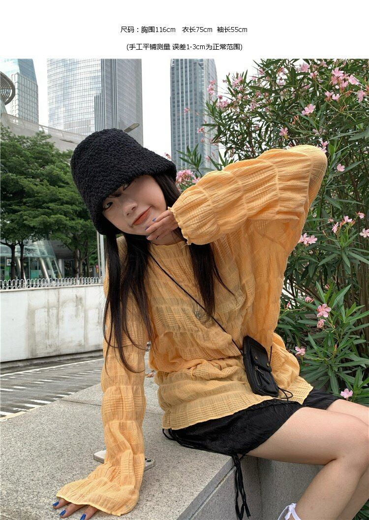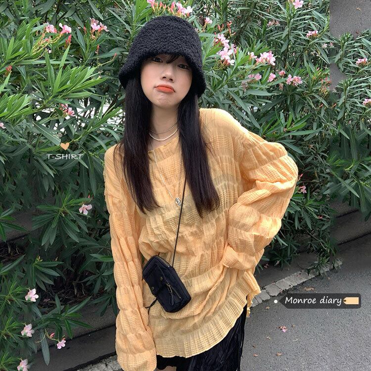 イエローTシャツシャツ ゆったりスプリングルーズスタンダードトップス ロング レトロ 春物 長袖 MONROE46774744388