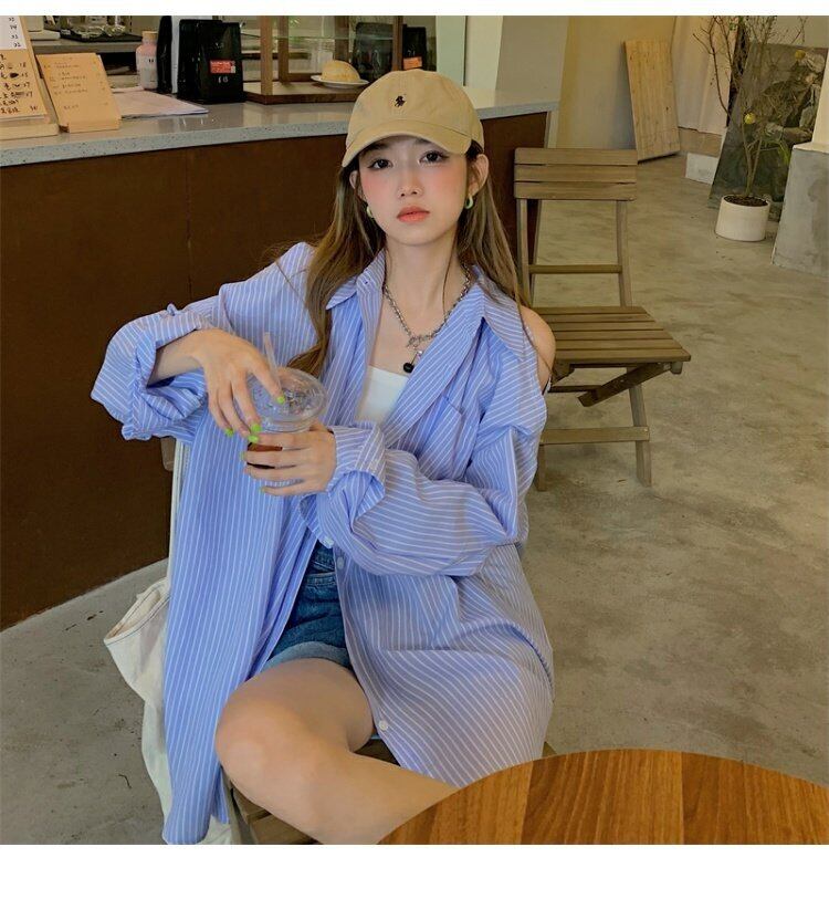 シャツ ストライプスタンダードジャケット スプリングカジュアルトップス レトロ 春物 ミドル丈 MONROE17732561209