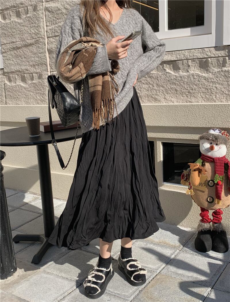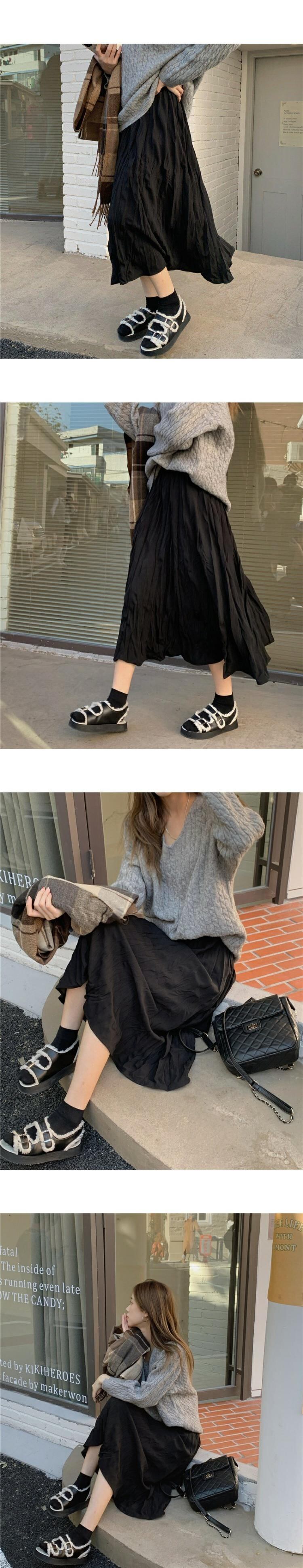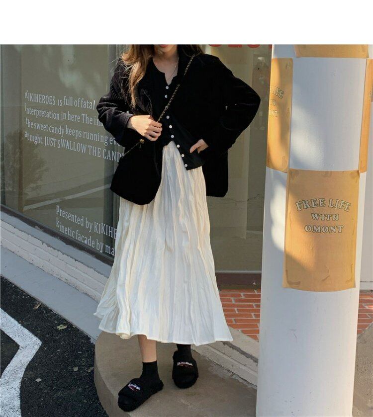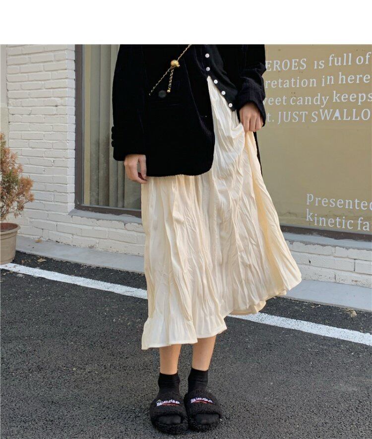 韓国ファッションハイウェストウェストスリムプリーツスカート スプリング秋物ブラック 春物 オータム スタイル ウエスト MONROE42245632293