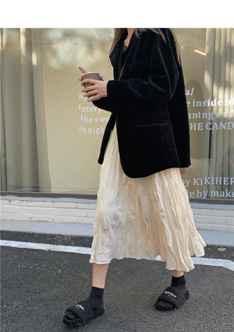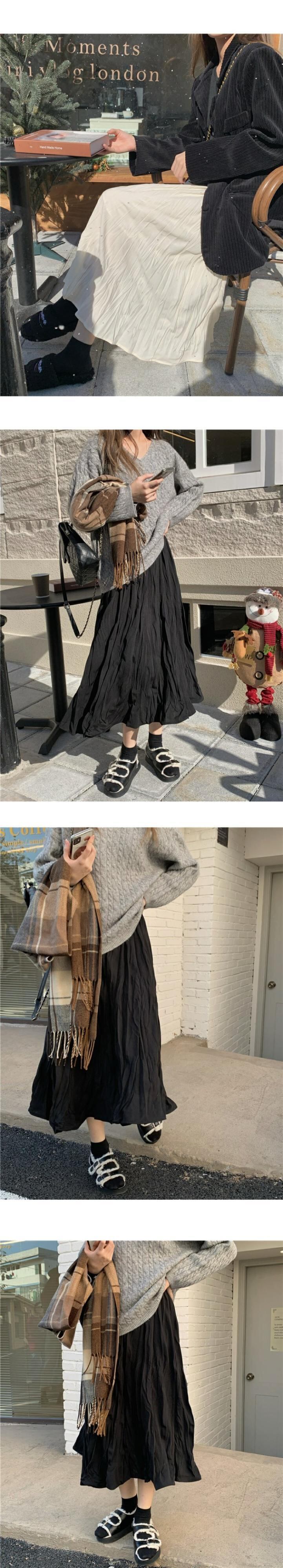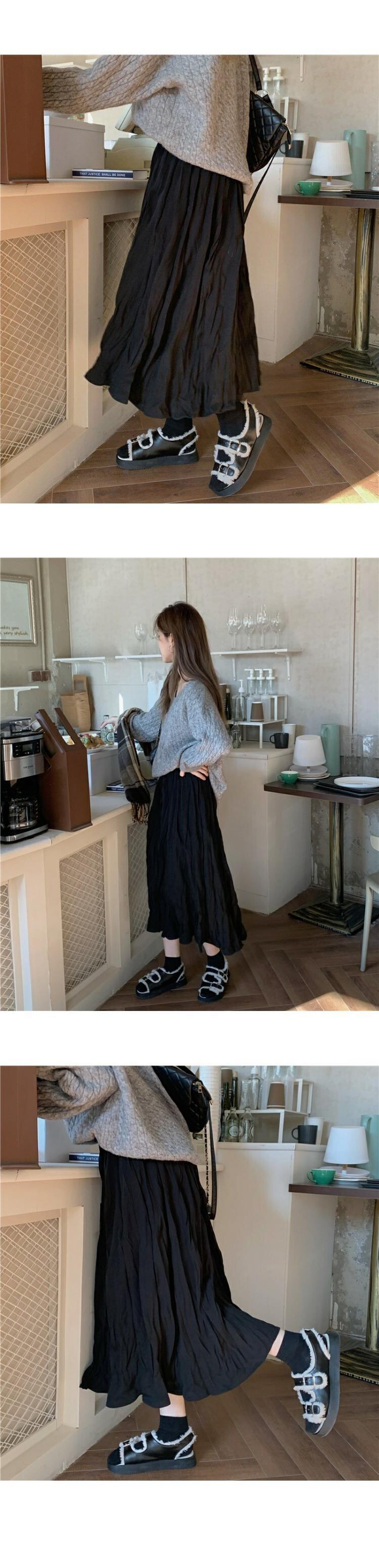韓国ファッションハイウェストウェストスリムプリーツスカート スプリング秋物ブラック 春物 オータム スタイル ウエスト MONROE42245632293