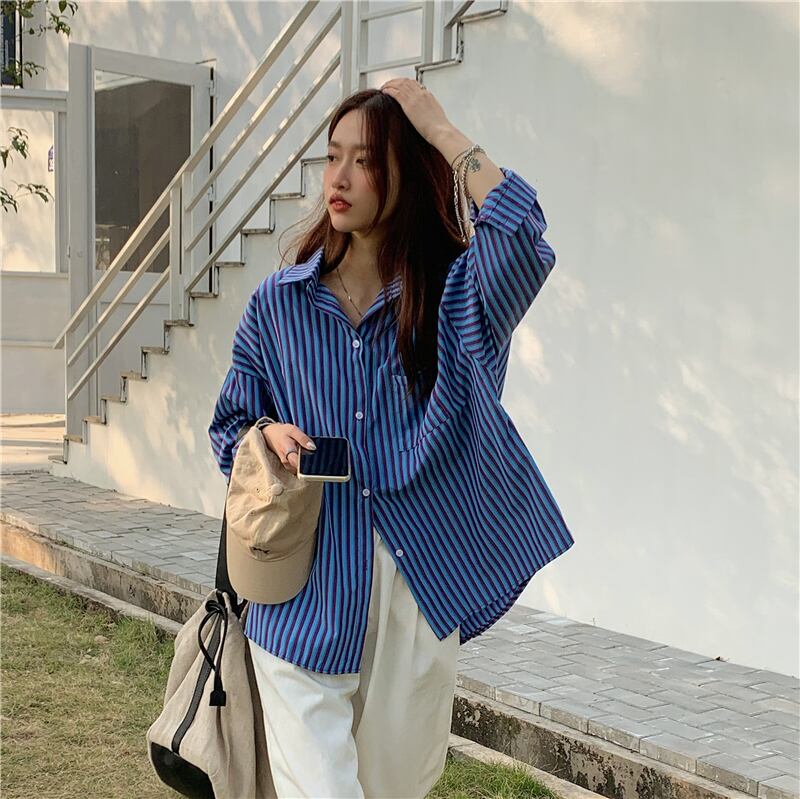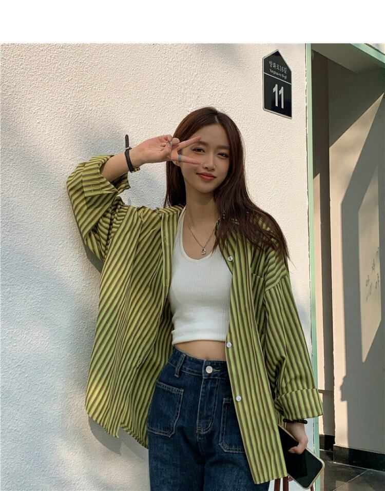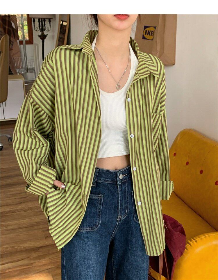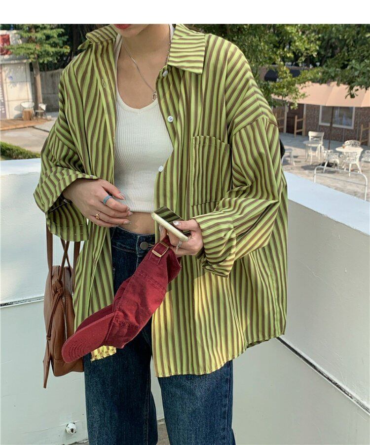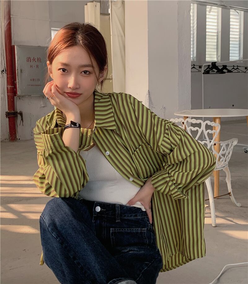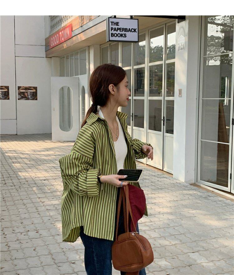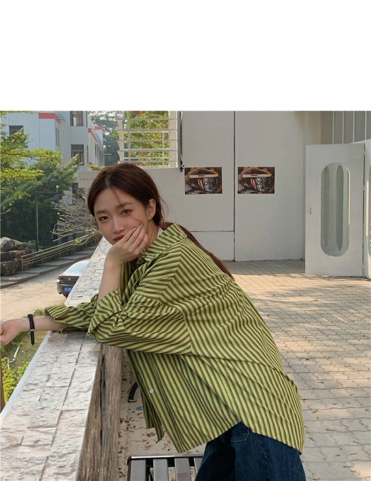 ストライプシャツ ルーズカラージャケット スプリングトップス 春物 MONROE67853022926