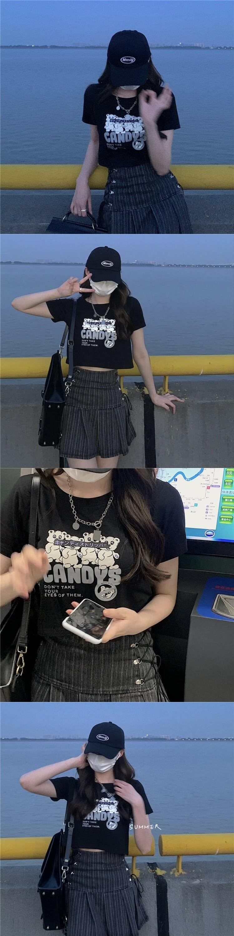 NEWブラックショートTシャツシャツ スタンダードゆったりスプリングスリムカジュアルトップス レトロ 春物 MONROE72523568469