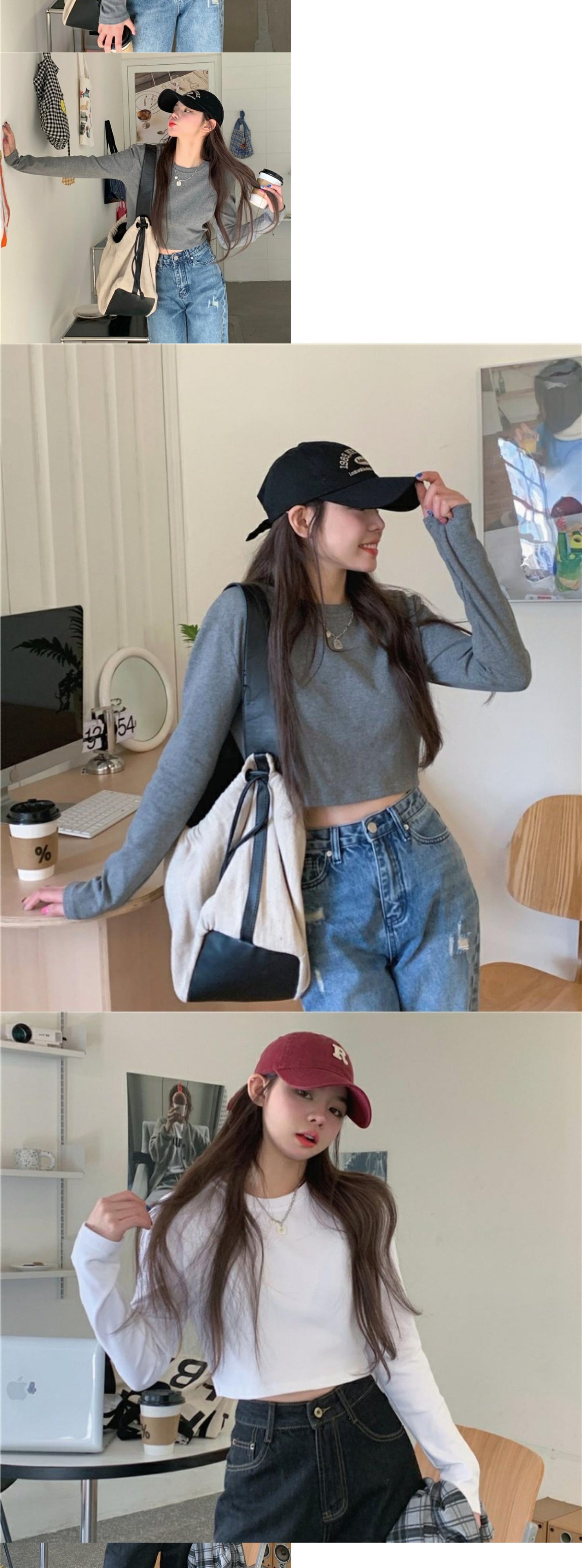 スタンダードグレーショートTシャツシャツ 薄手ゆったりスプリングトップス ロング レトロ 春物 長袖 MONROE9792654788