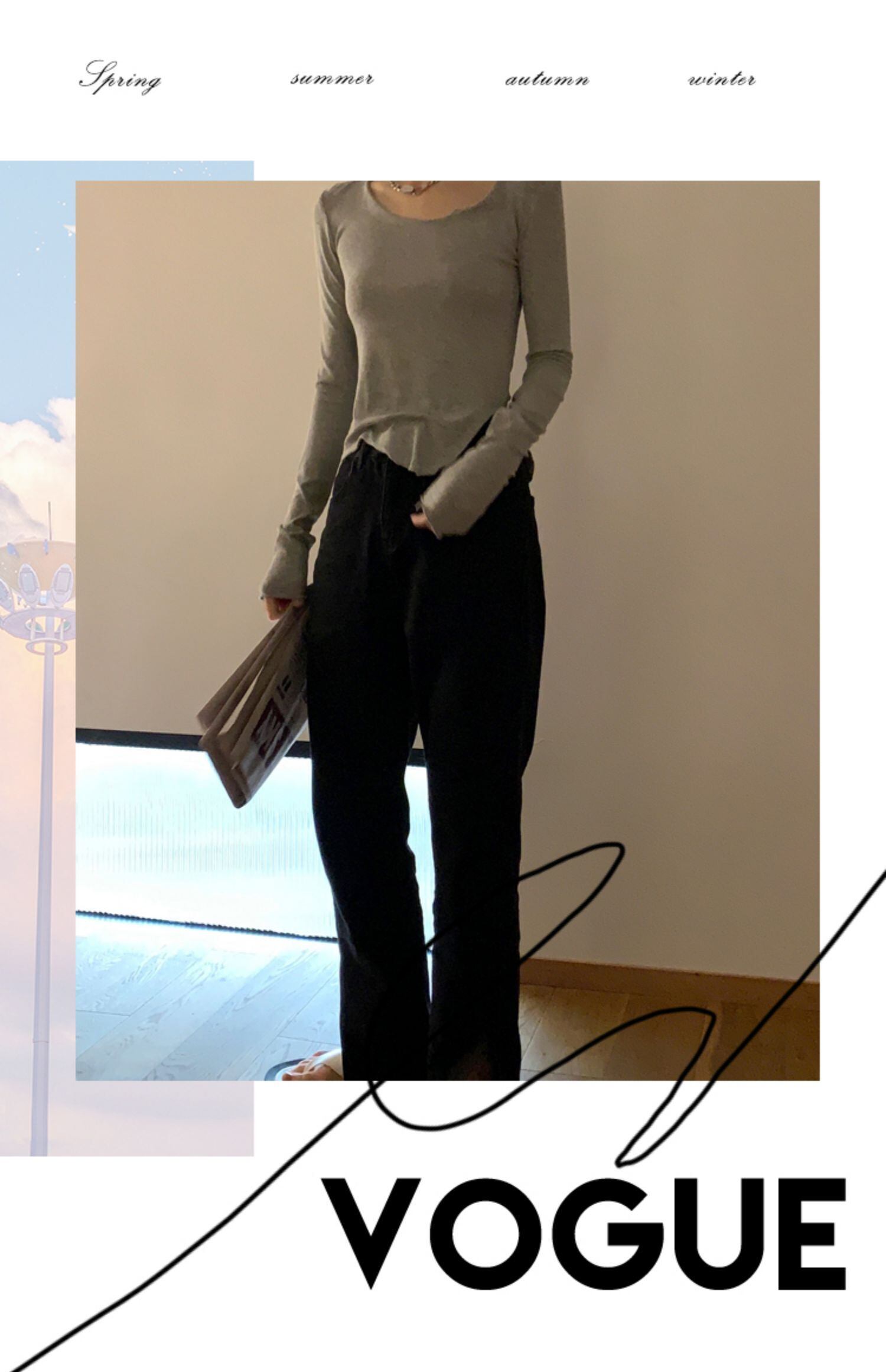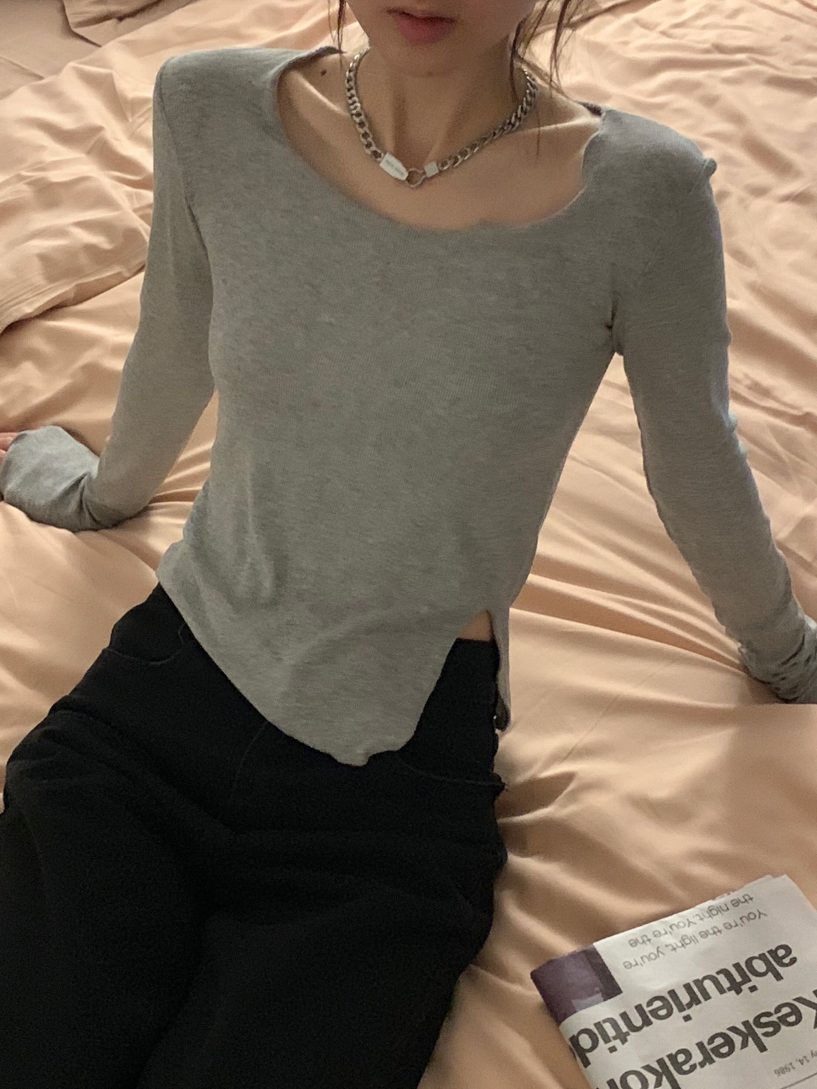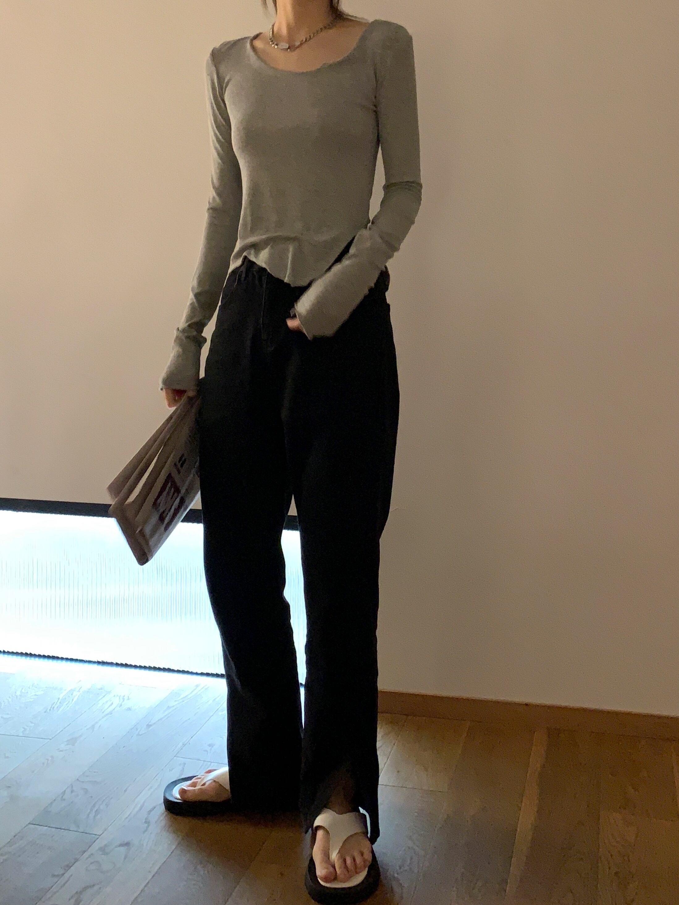 スリムTシャツシャツ 秋物薄手ゆったりショートNEW ロング オータム 長袖 MONROE88763608924