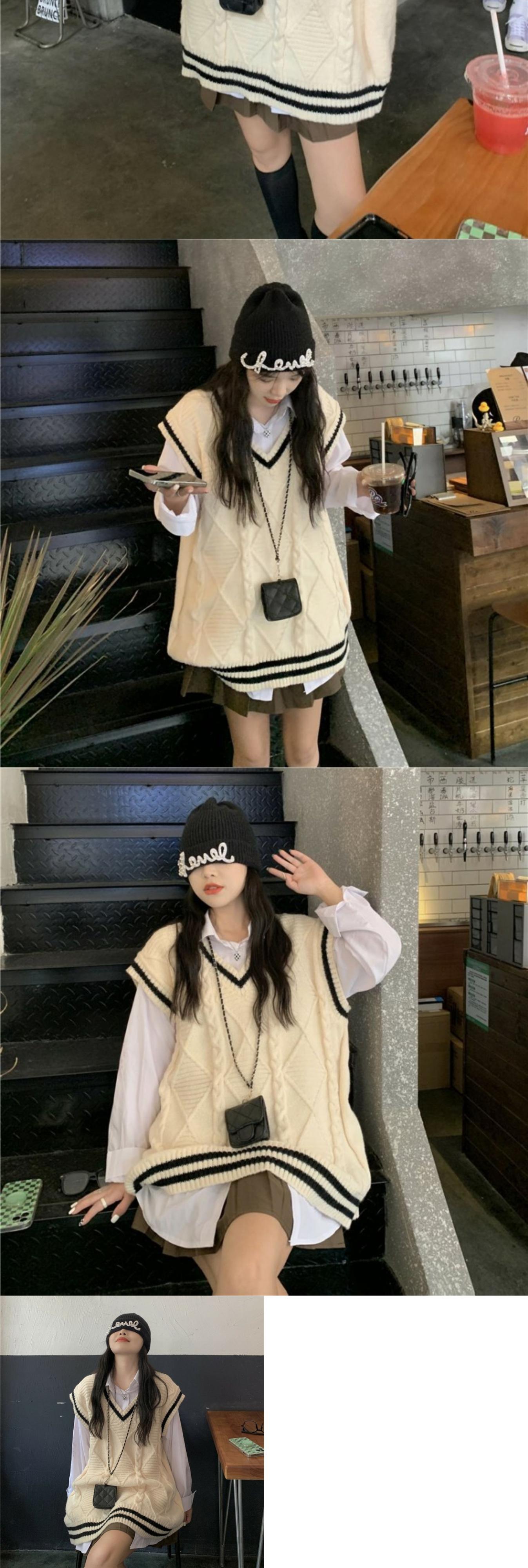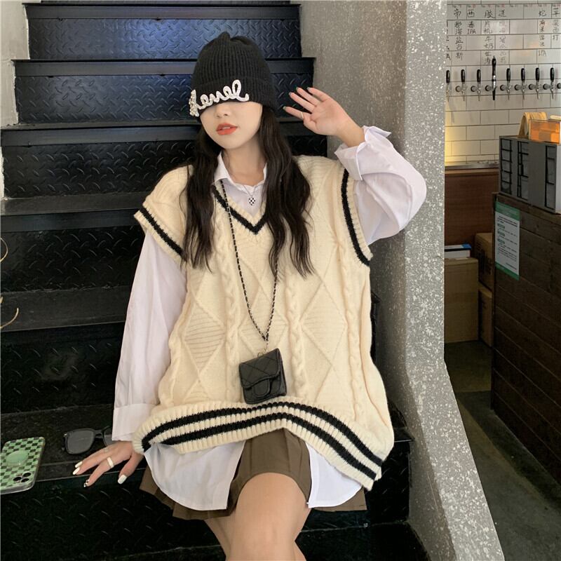 スタイルVネックカラーニットジャケット 秋物韓国ファッションセーター オータム MONROE22023983153
