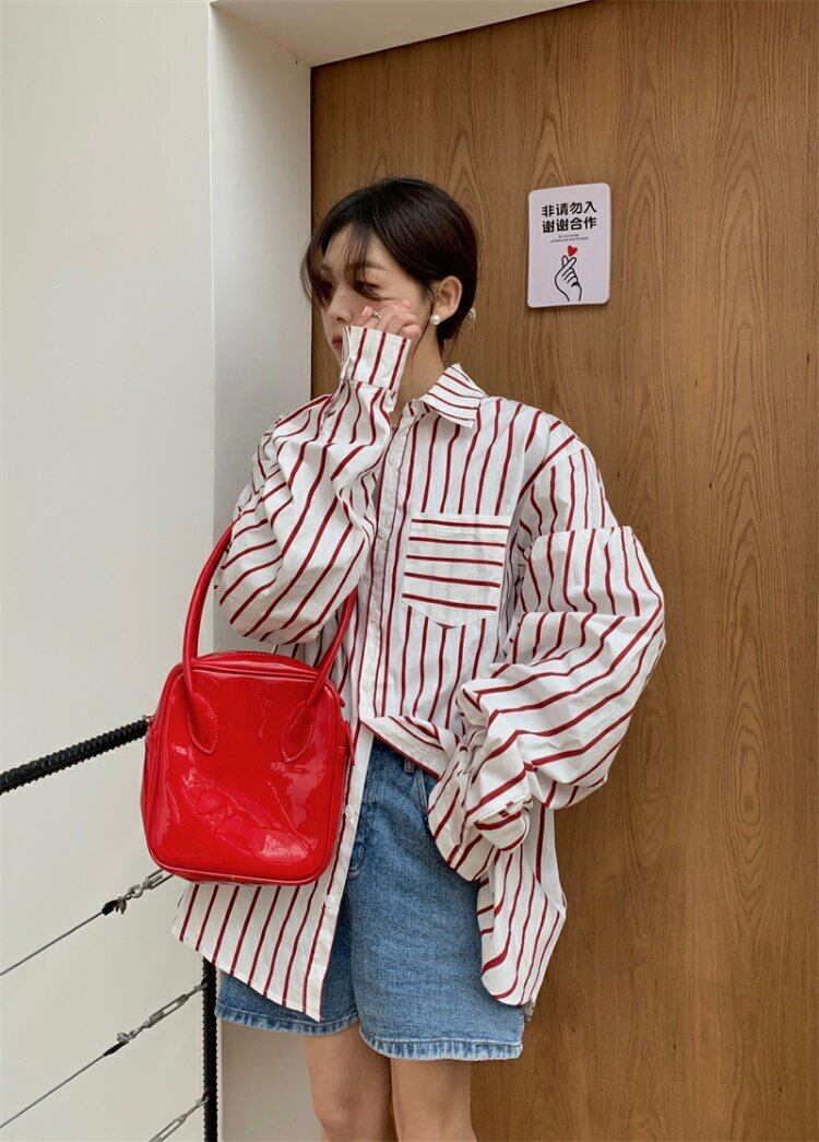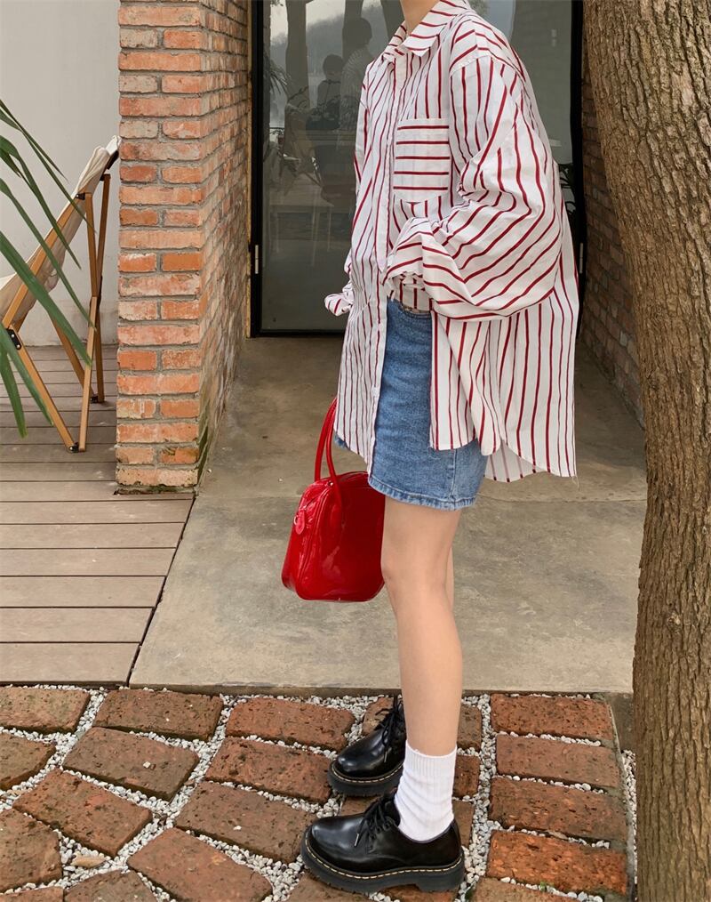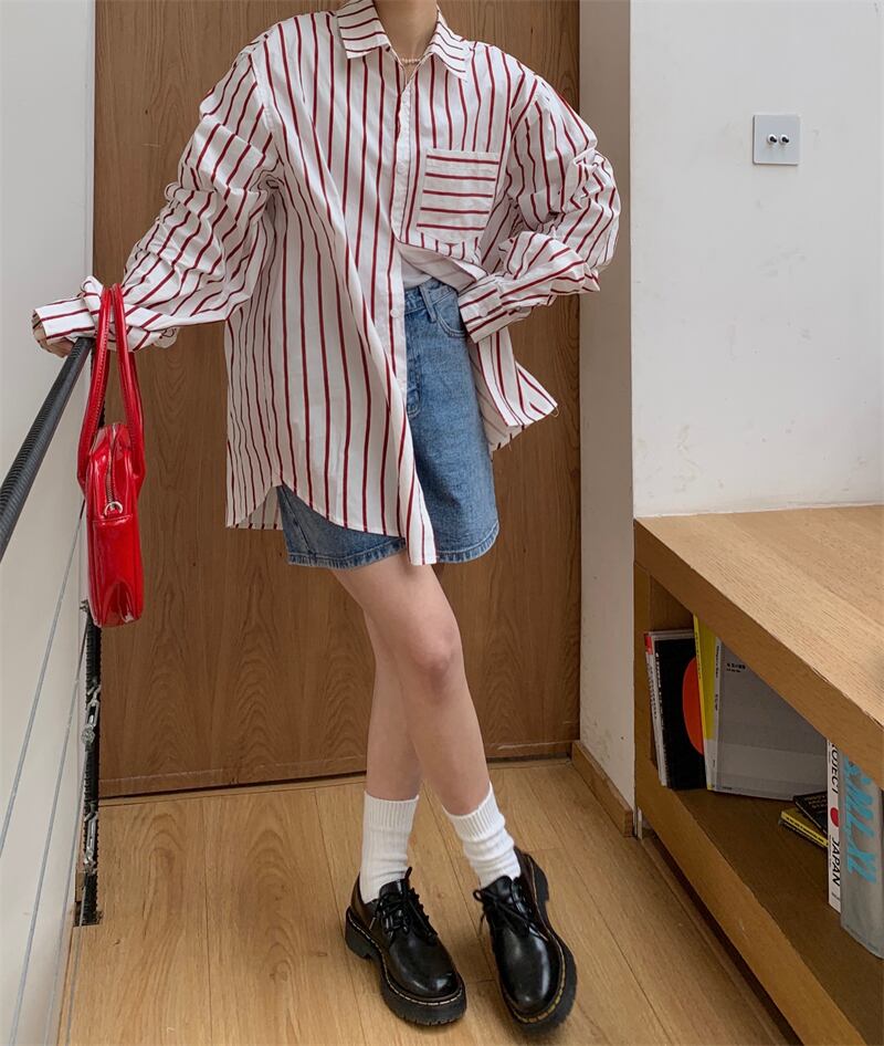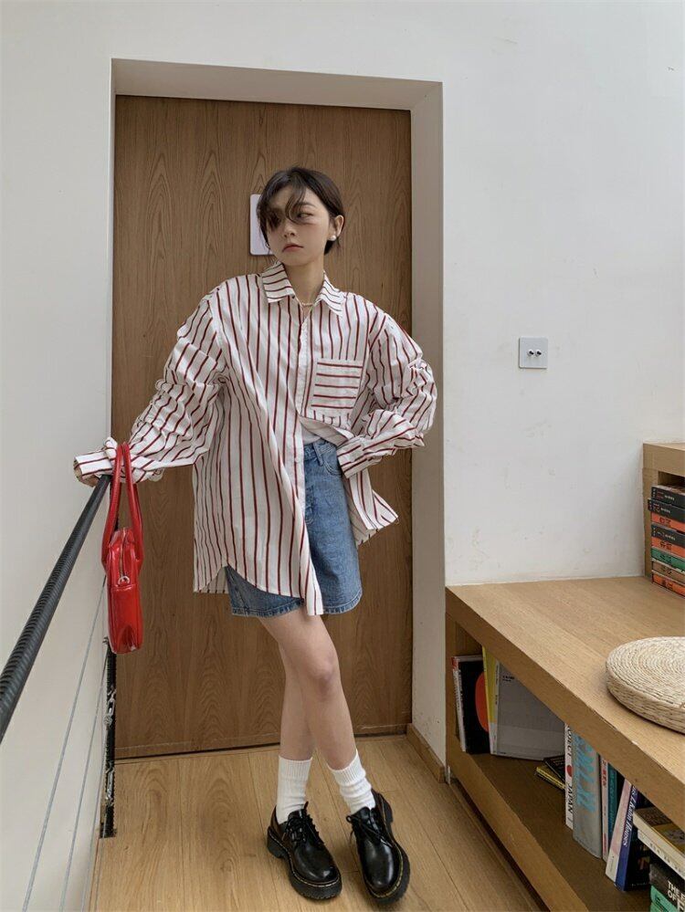 スタンダードストライプカジュアルシャツ 薄手ルーズジャケット スプリングトップス レトロ 春物 MONROE60079629732
