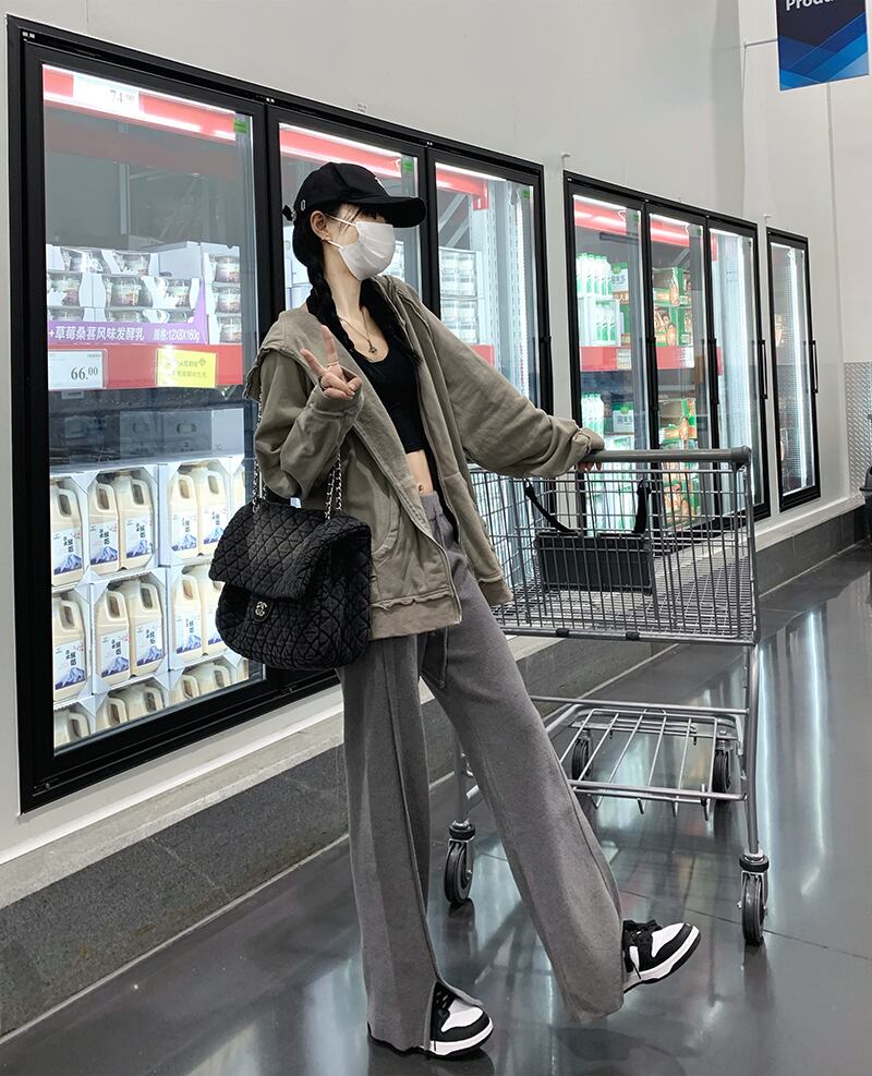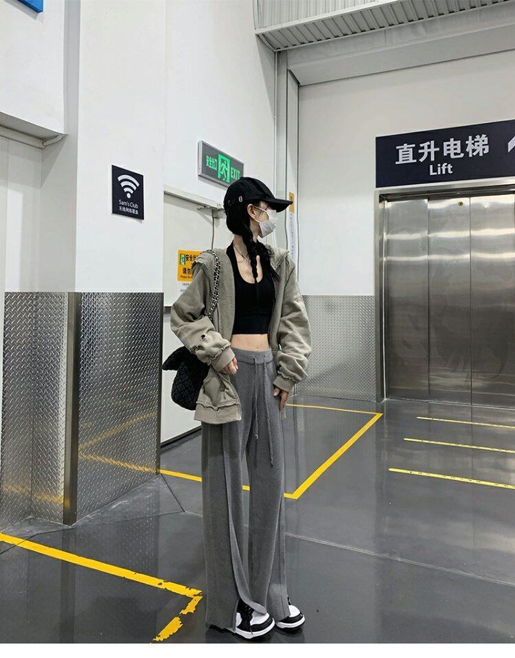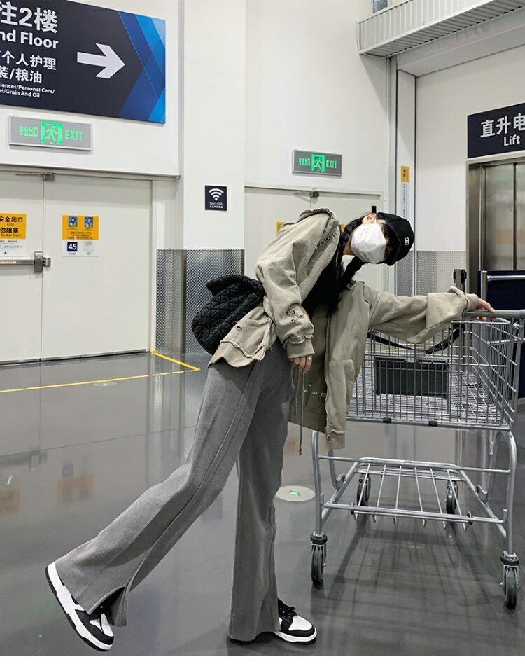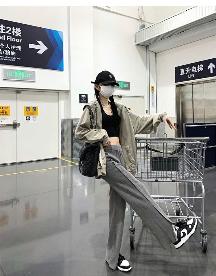 スタイルNEWルーズハイウェストウェストスリムカジュアルパンツ スプリンググレーロング 春物 ウエスト MONROE1235083799